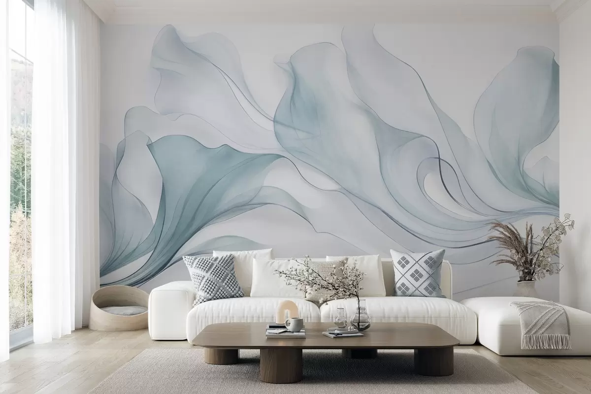 Fototapeta Abstrakcyjna, płynna faktura w odcieniach błękitu z delikatnymi liniami Nr w09815v1