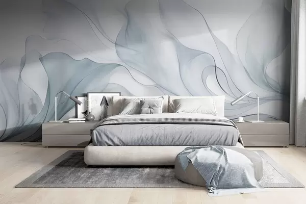 Fototapeta Abstrakcyjna, płynna faktura w odcieniach błękitu z delikatnymi liniami Nr w09815v1