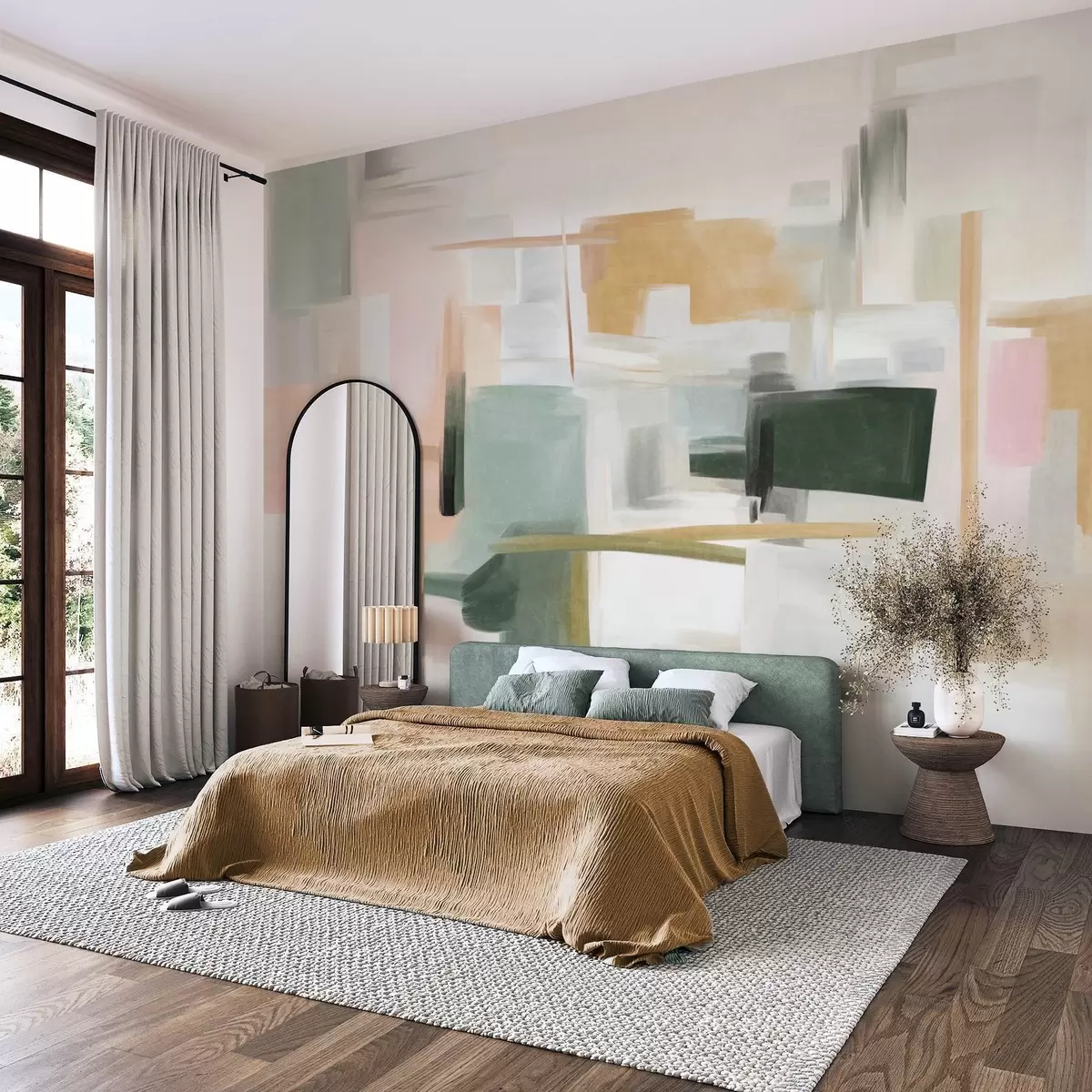 Fototapeta Abstrakcyjny, minimalistyczny styl malarski charakteryzujący się delikatnymi pastelowymi barwami, geometrycznymi kształtami i liniami Nr w09828