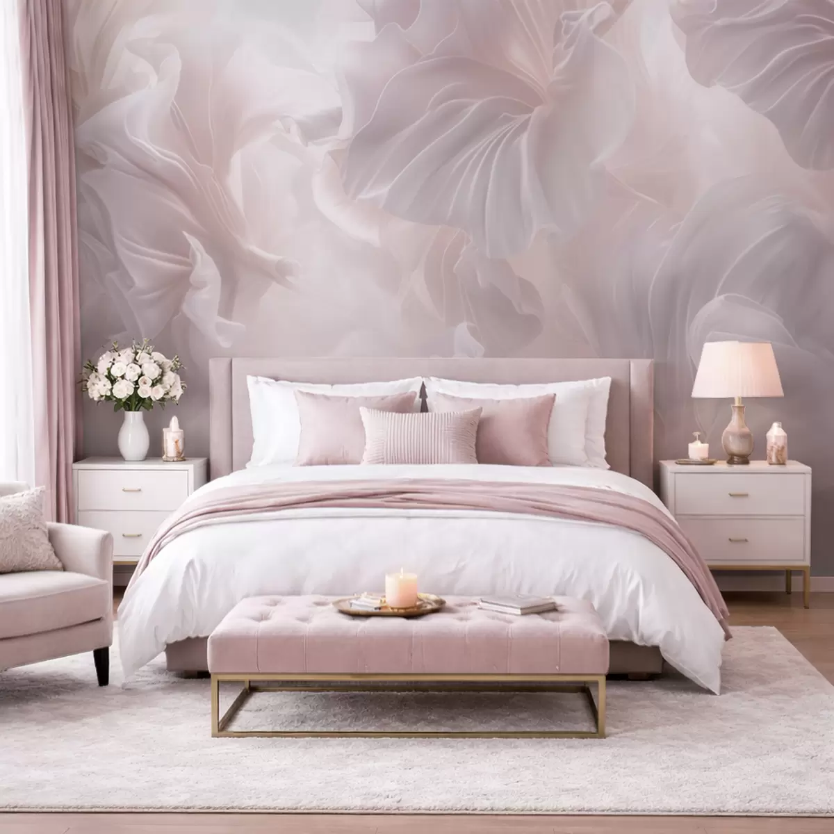Fototapeta Abstrakcyjne motywy kwiatowe z falującymi płatkami w pastelowych odcieniach Nr w09841