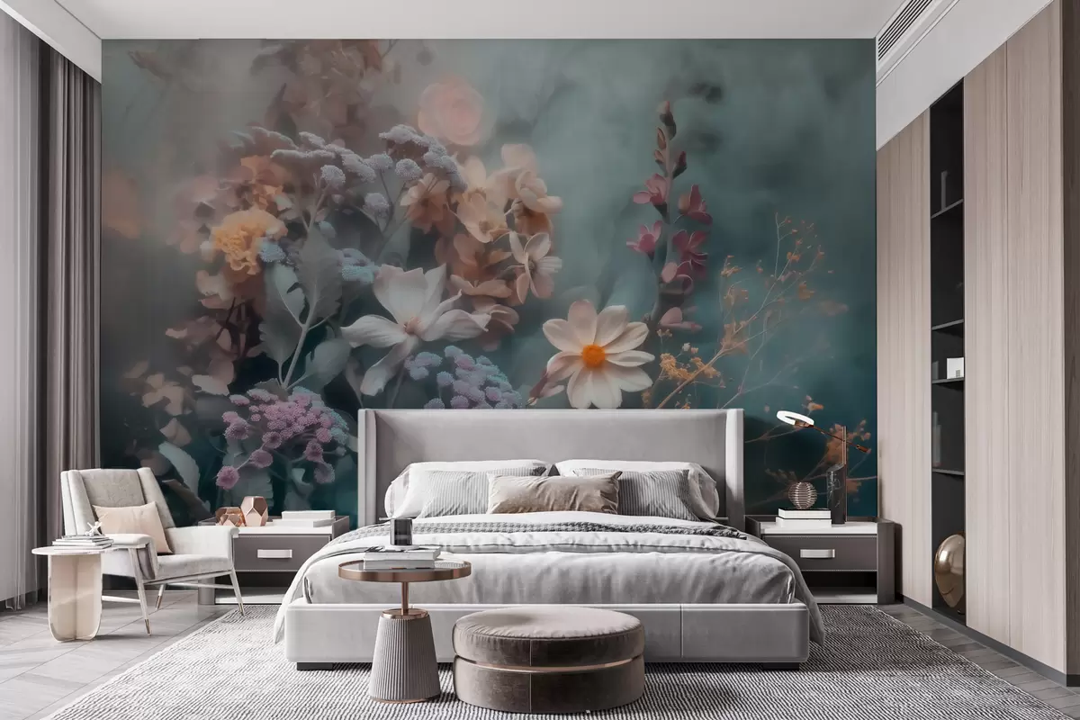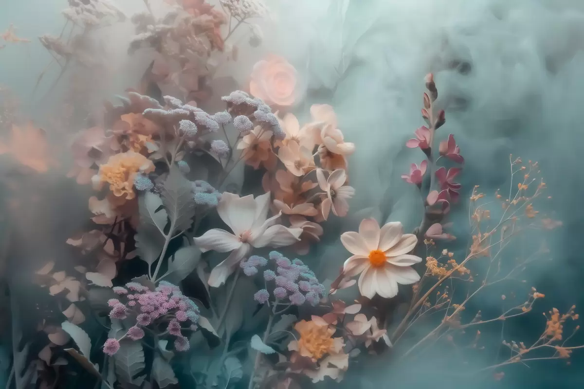 Fototapeta Marzycielska kompozycja polnych kwiatów w delikatnej mgiełce pastelowych barw Nr w09846