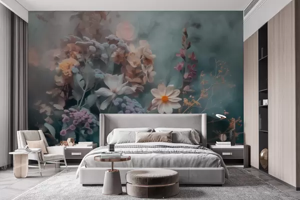 Fototapeta Marzycielska kompozycja polnych kwiatów w delikatnej mgiełce pastelowych barw Nr w09846