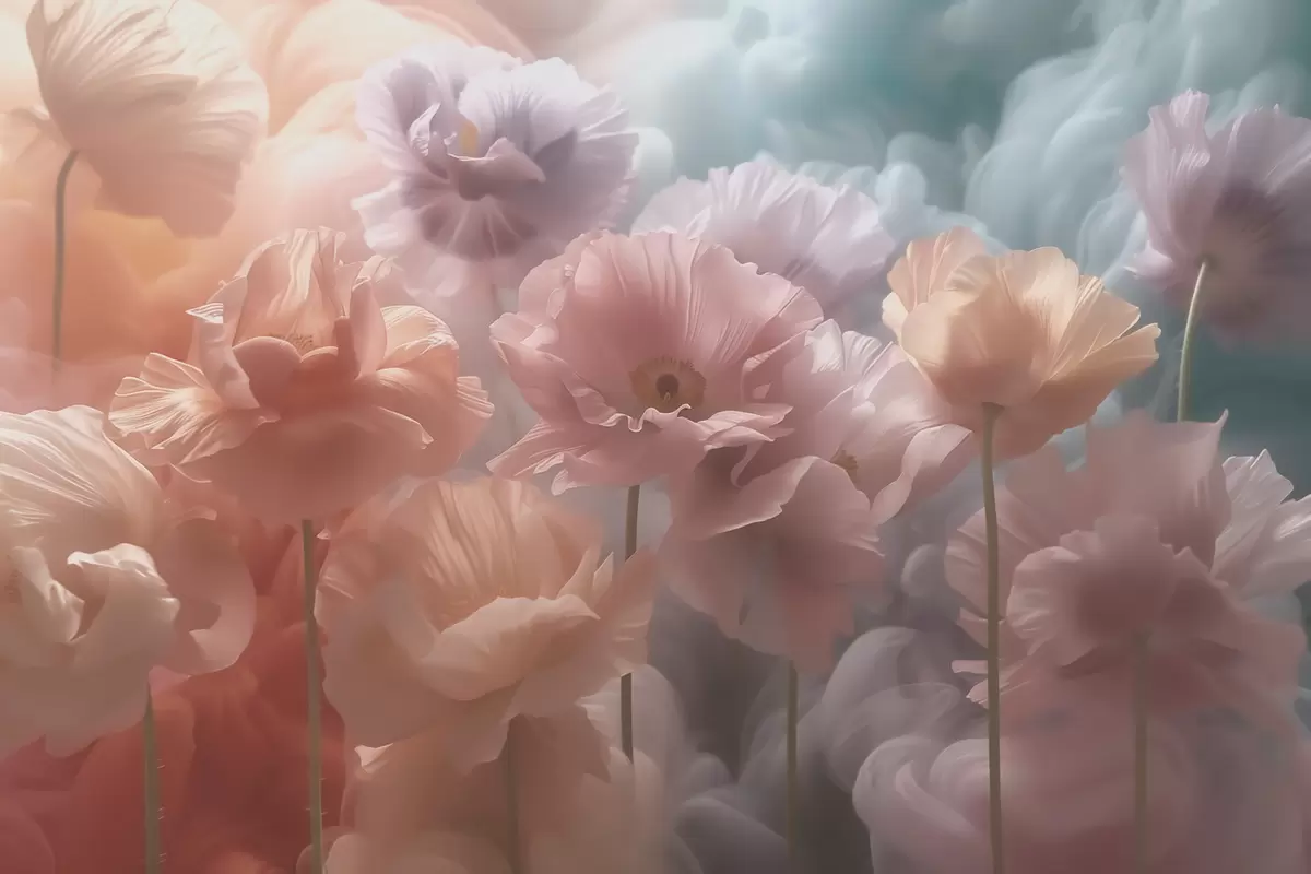 Fototapeta Lekkie kwiaty o przezroczystych płatkach w delikatnym porannym świetle Nr w09847