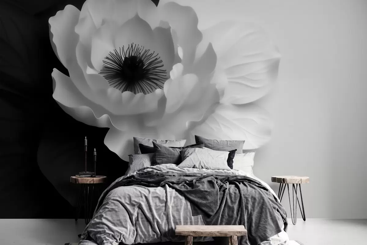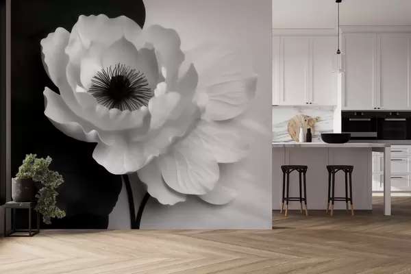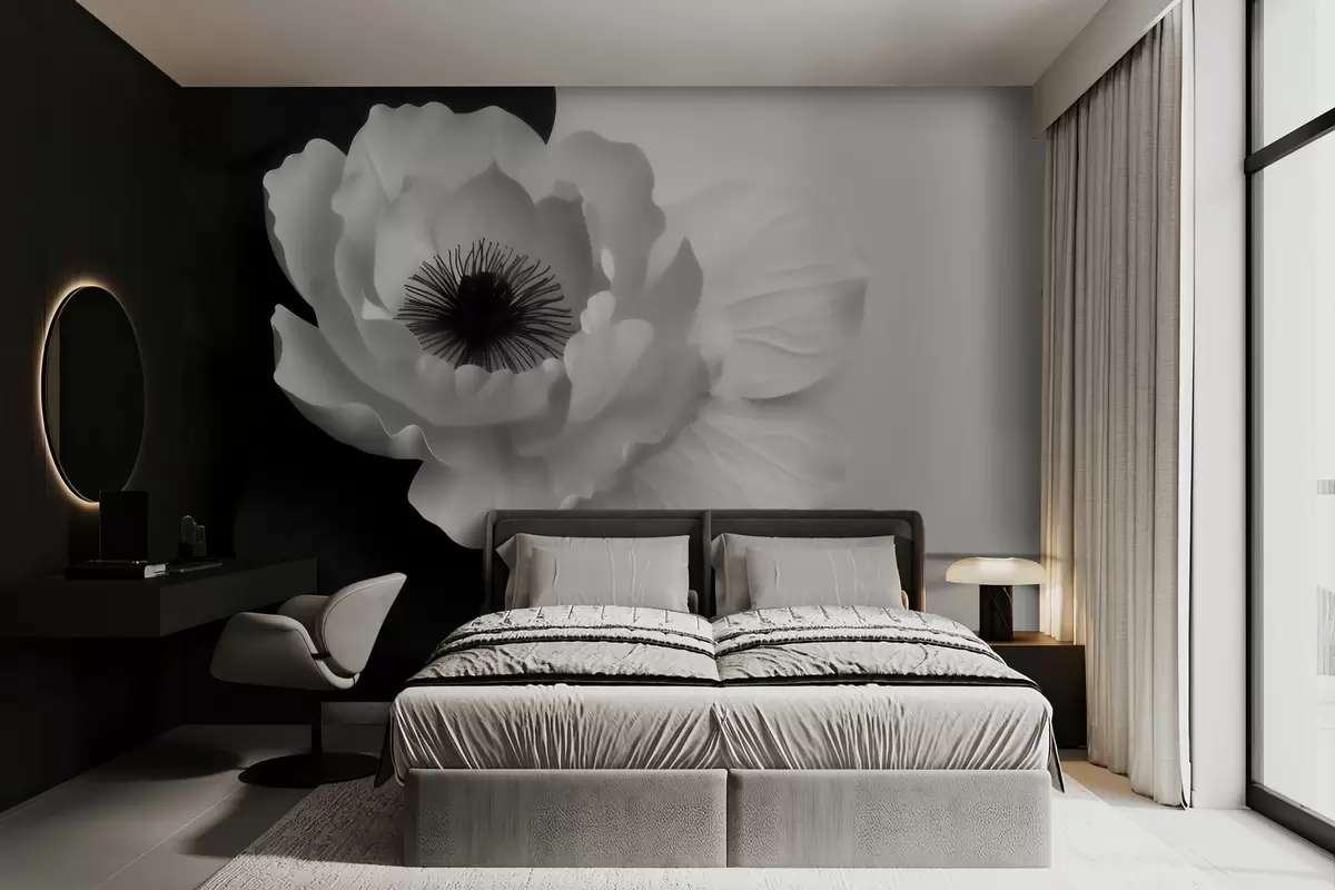 Fototapeta Kontrastujący biały kwiat z ciemnym środkiem na czarno-białym tle Nr w09852