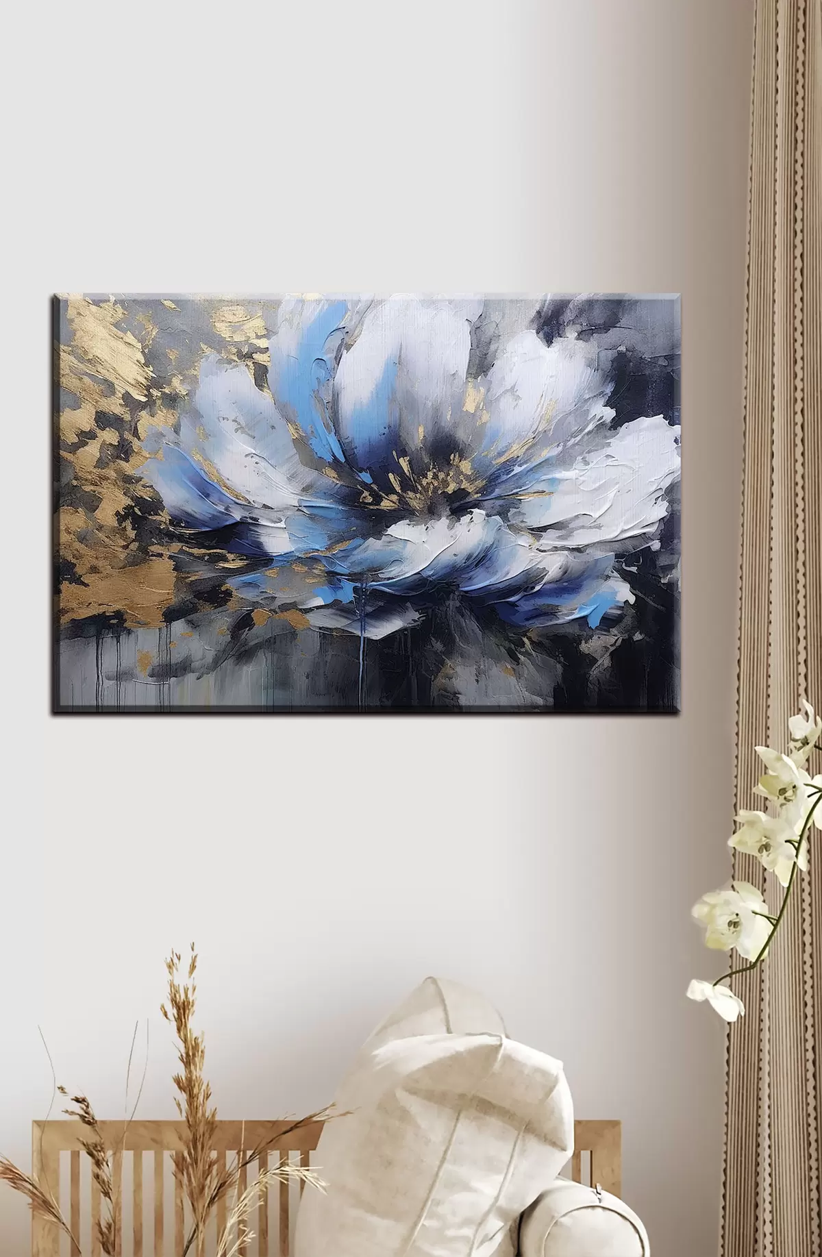 Obraz można powiesić natychmiast po jego otrzymaniu. Obraz zostanie naciągnięty na drewniany blejtram o szerokości 2 cm.