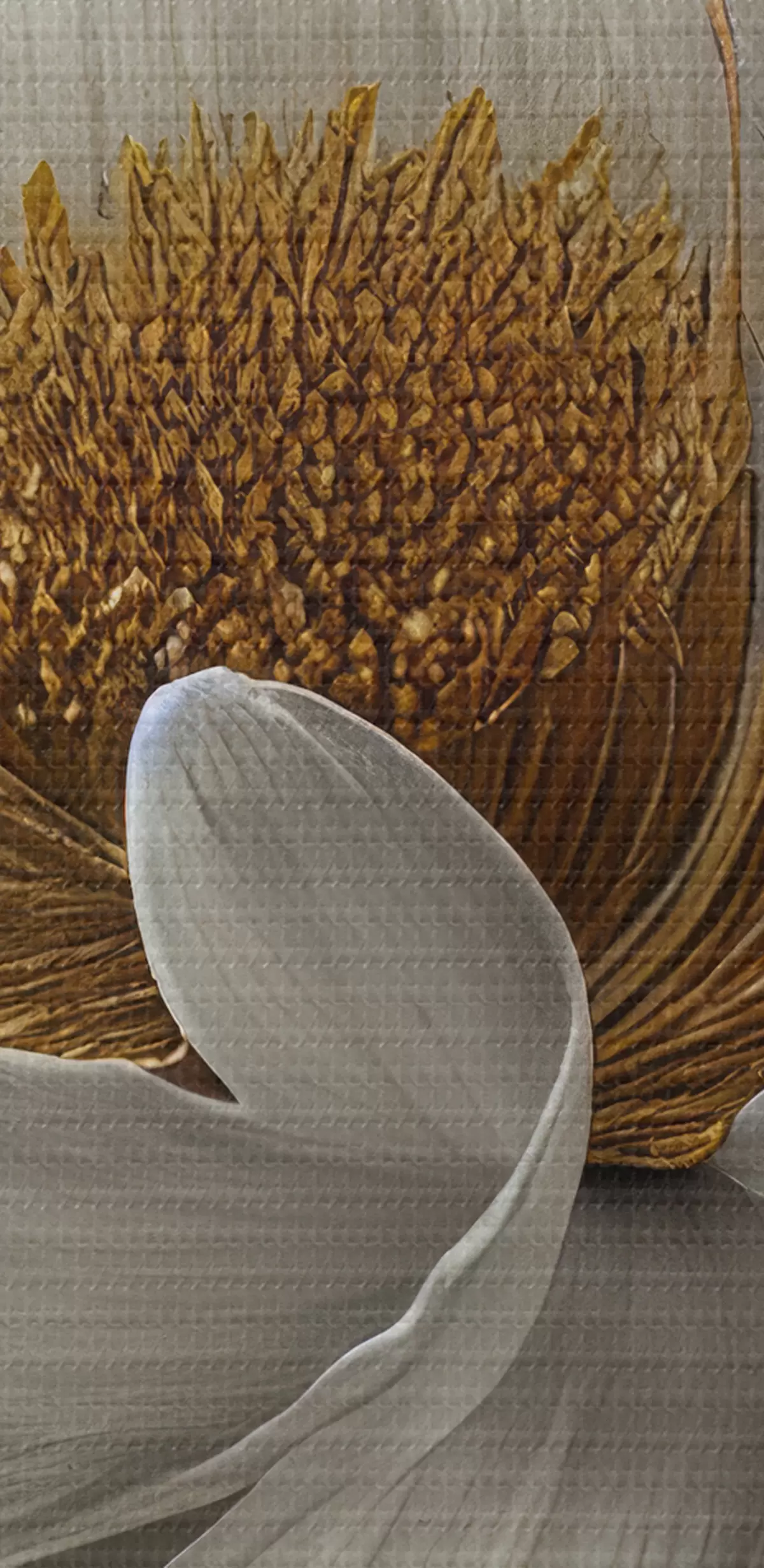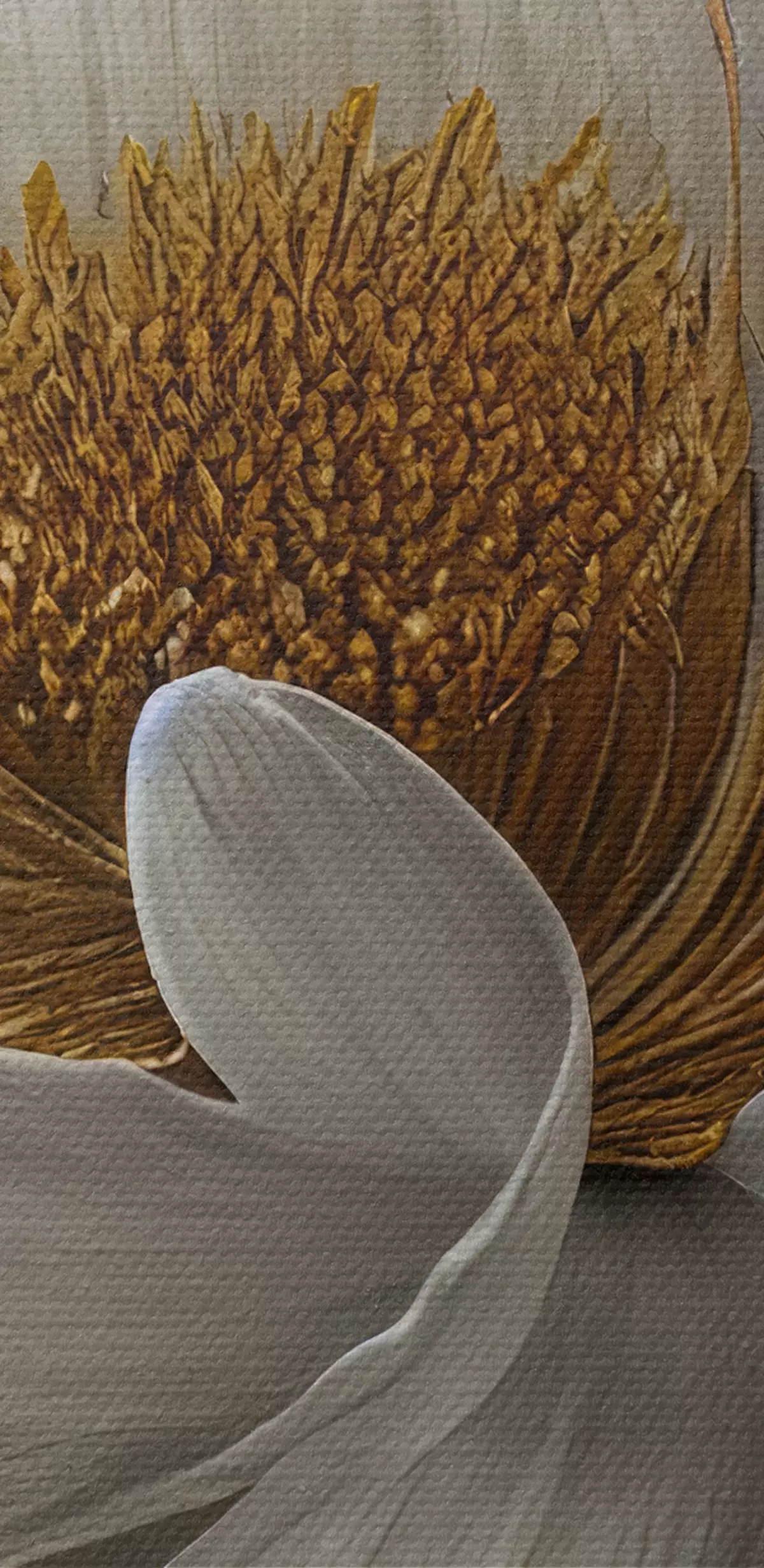 Drobny splot nici na tym płótnie przypomina powierzchnię profesjonalnych płócien artystycznych.
