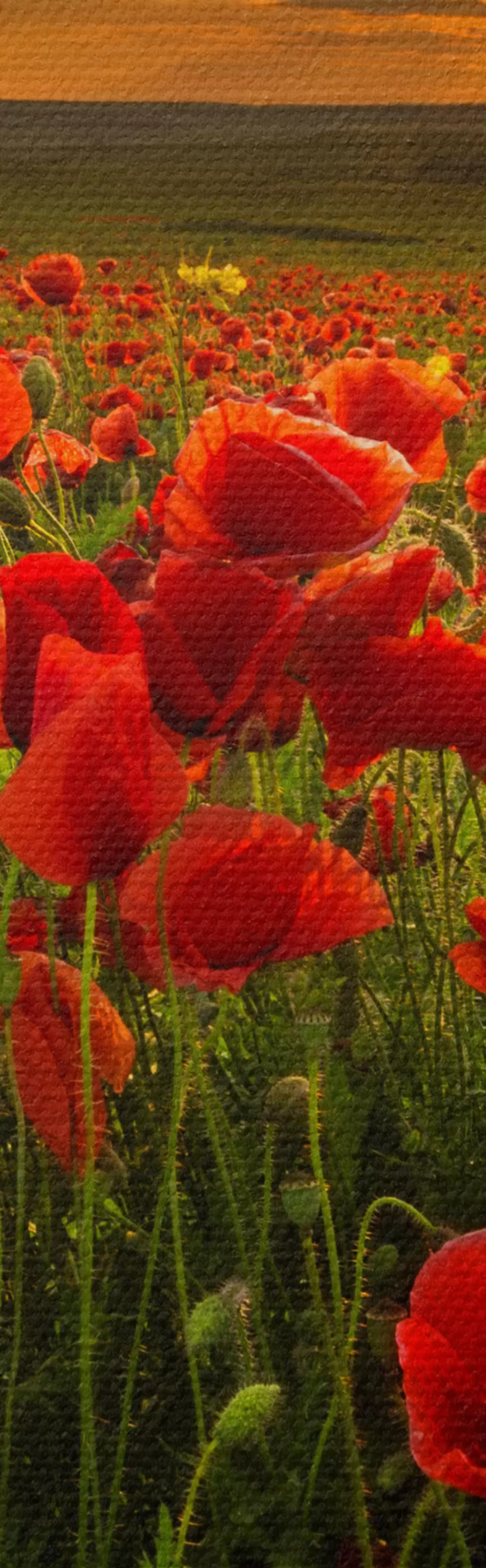 Do zamówienia dostępne są trzy rodzaje materiału: Economic Canvas - gęsty i trwały materiał do druku cyfrowego, identyczny z płótnem malarskim, wodoodporna powierzchnia, realistyczne odwzorowanie szczegółów, materiał średnioziarnisty. Premium Canvas - tekstura przypominająca płótno malarskie (przeplatane drobne nitki). Miękka, szczegółowa reprodukcja obrazu na matowej powierzchni. Eco-Premium - wysokiej jakości tkanina w 100% bawełniana. Dzięki naturalnym włóknom bawełnianym materiał jest trwały i odporny na zużycie. Doskonałe odwzorowanie kolorów i szczegółów.