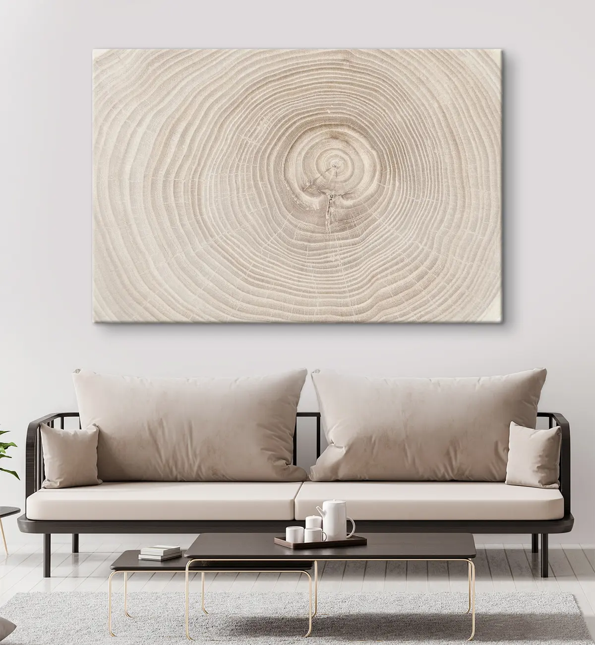 Obraz Pierścionek wykonany z ciętego drewna w delikatnych odcieniach s36005