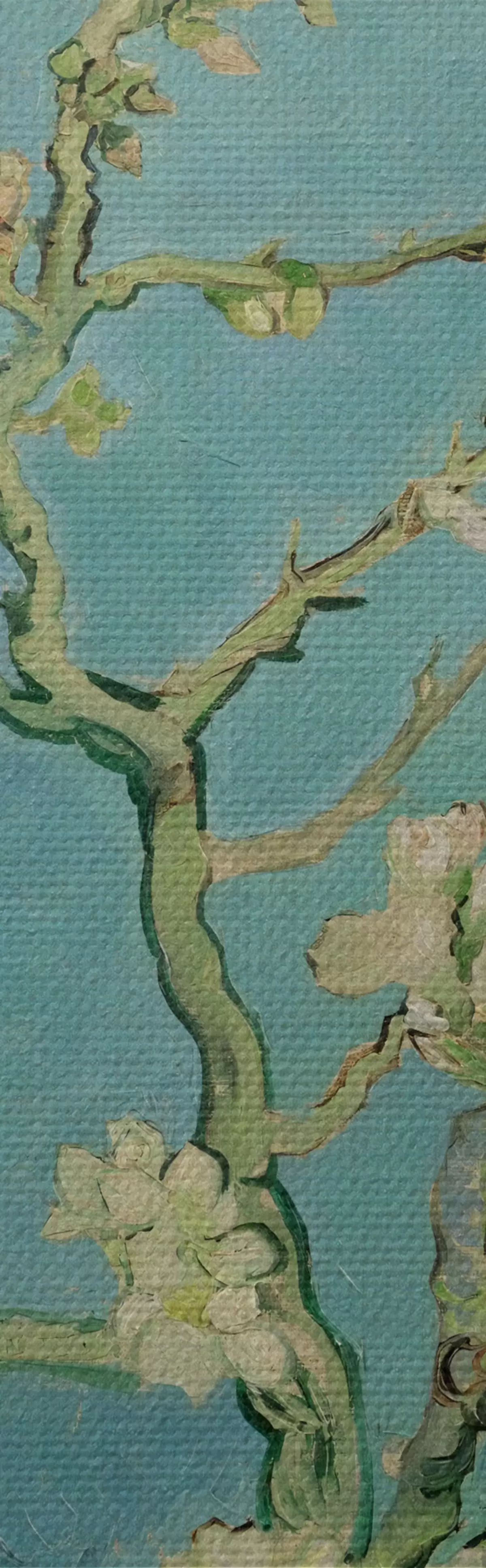 Drobny splot nici na tym płótnie przypomina powierzchnię profesjonalnych płócien artystycznych.