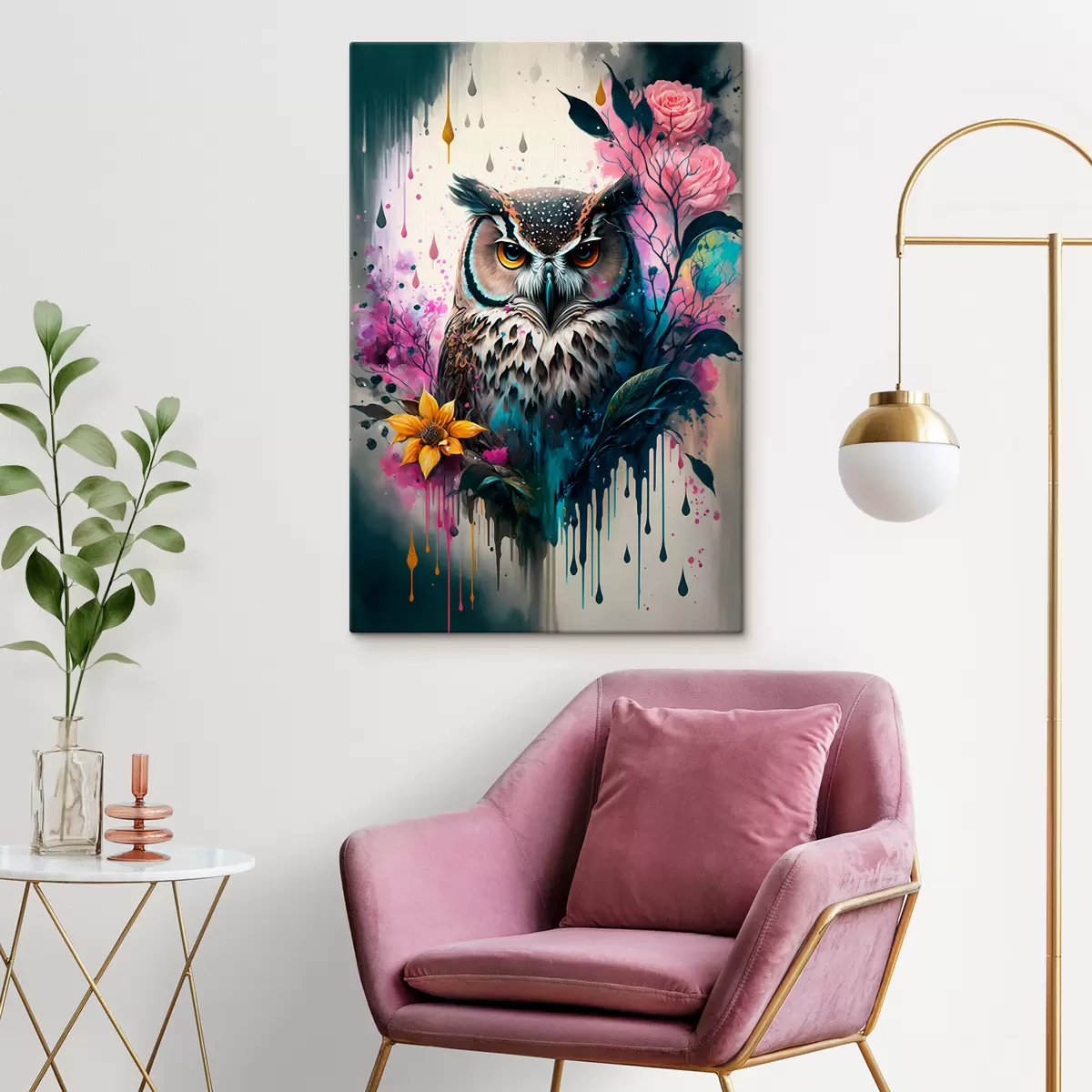 Obraz Dzienna sowa z kwiatami Nr s35348