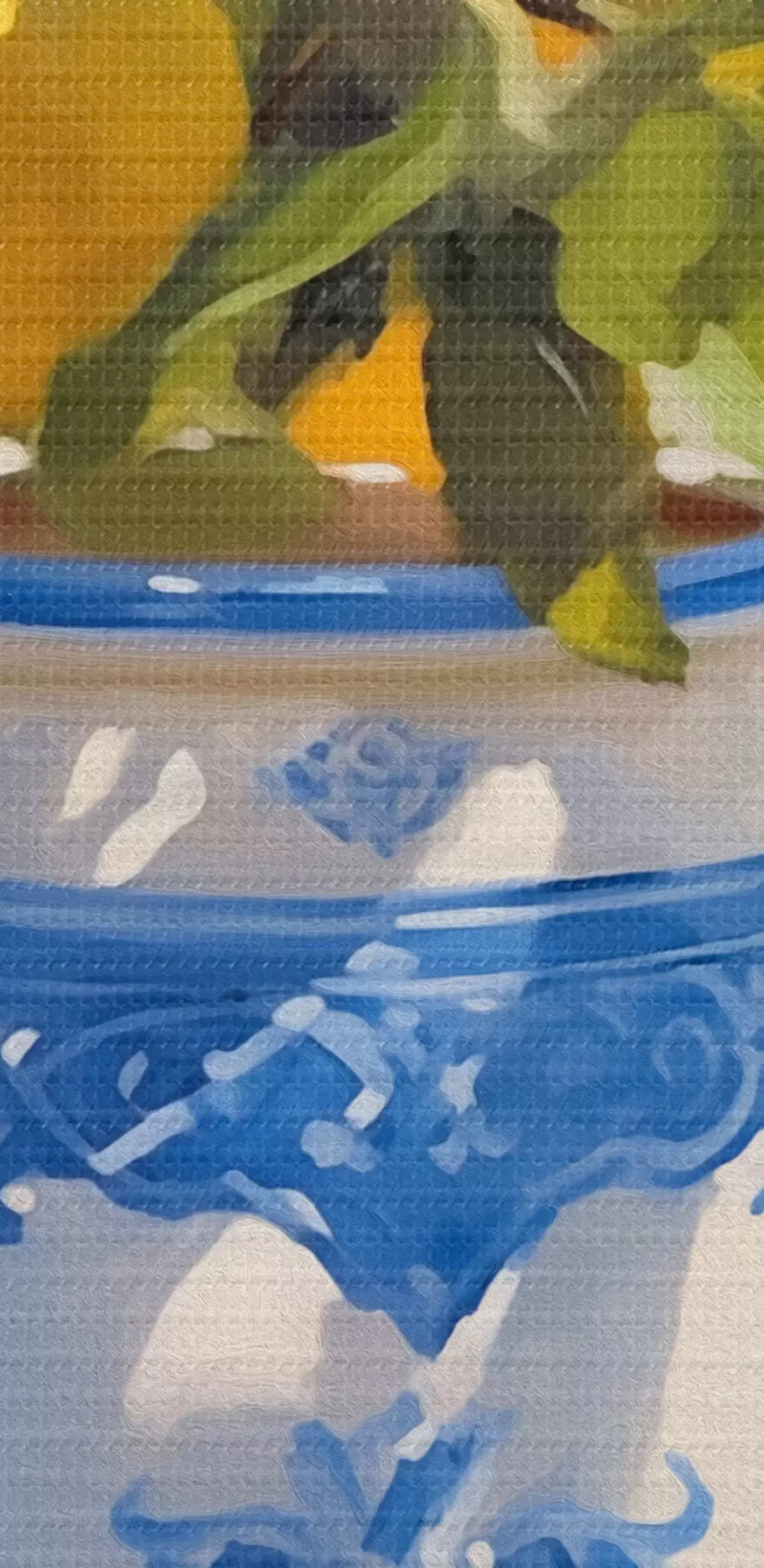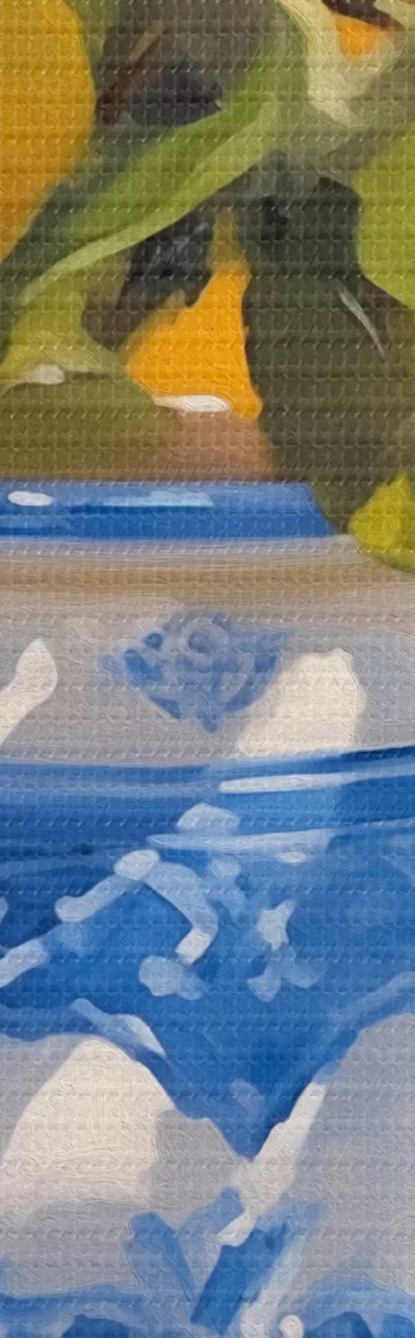 Drobny splot nici na tym płótnie przypomina powierzchnię profesjonalnych płócien artystycznych.