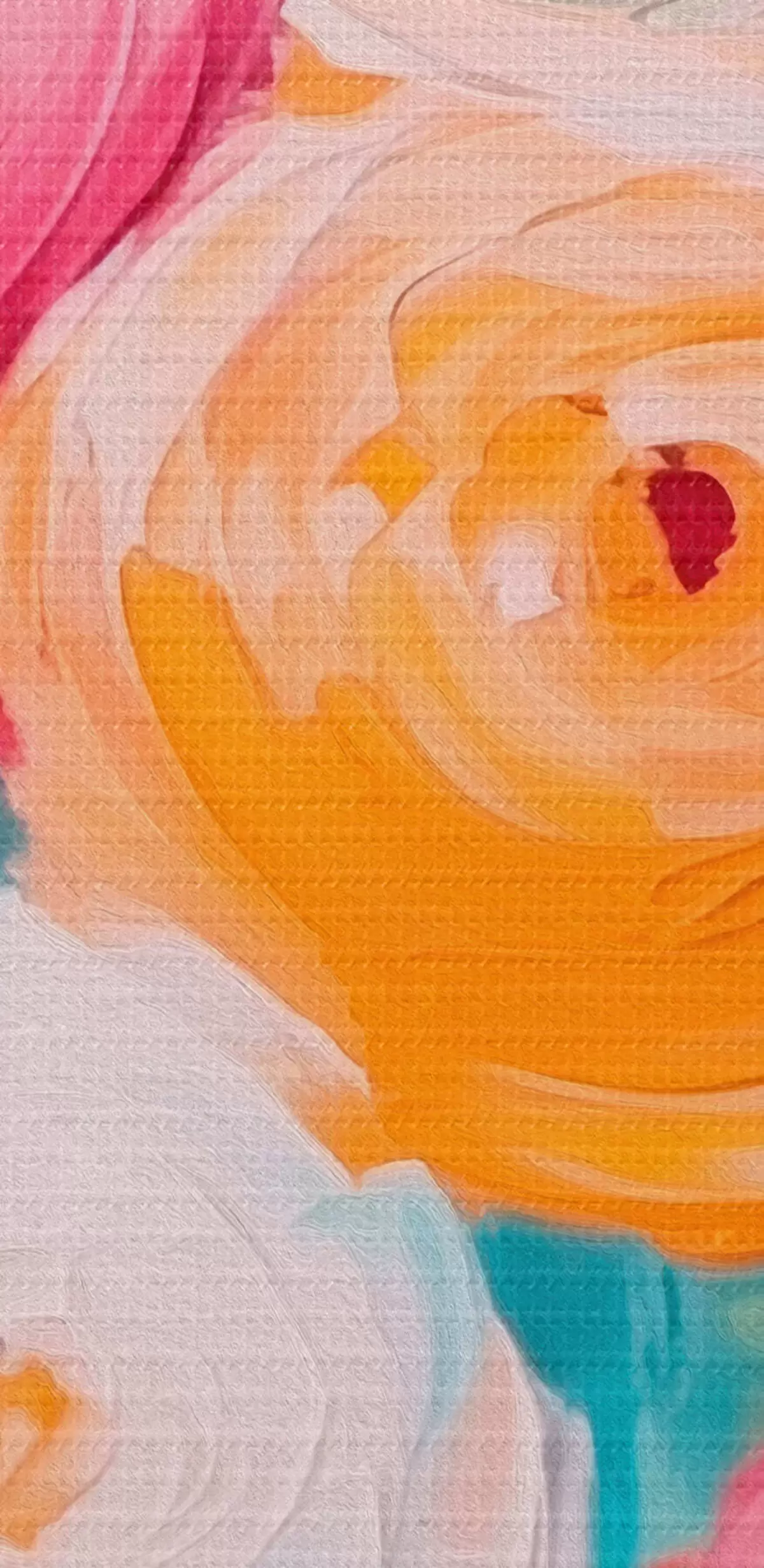 Drobny splot nici na tym płótnie przypomina powierzchnię profesjonalnych płócien artystycznych.