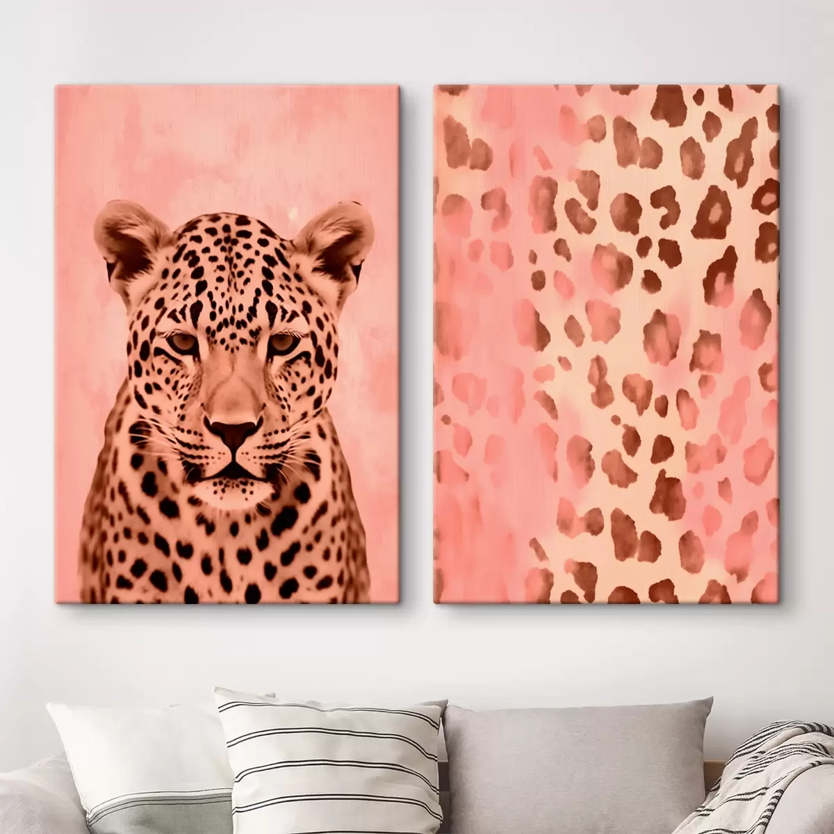 Obraz Portret geparda, abstrakcyjny wzór z nadrukiem lamparta na różowym tle Nr m00402