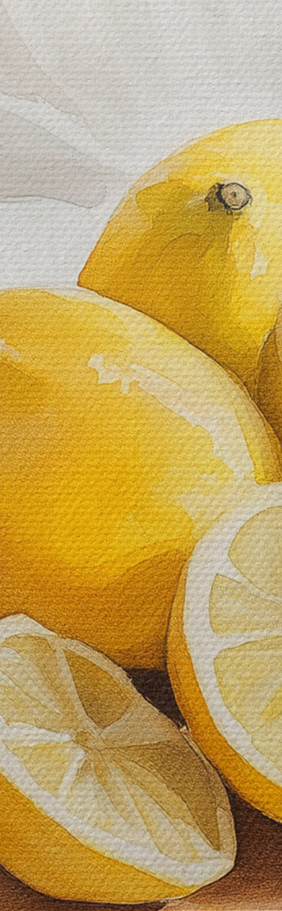 Obraz Naleśniki z masłem orzechowym, cytryny na drewnianej desce, styl akwareli Nr m00416