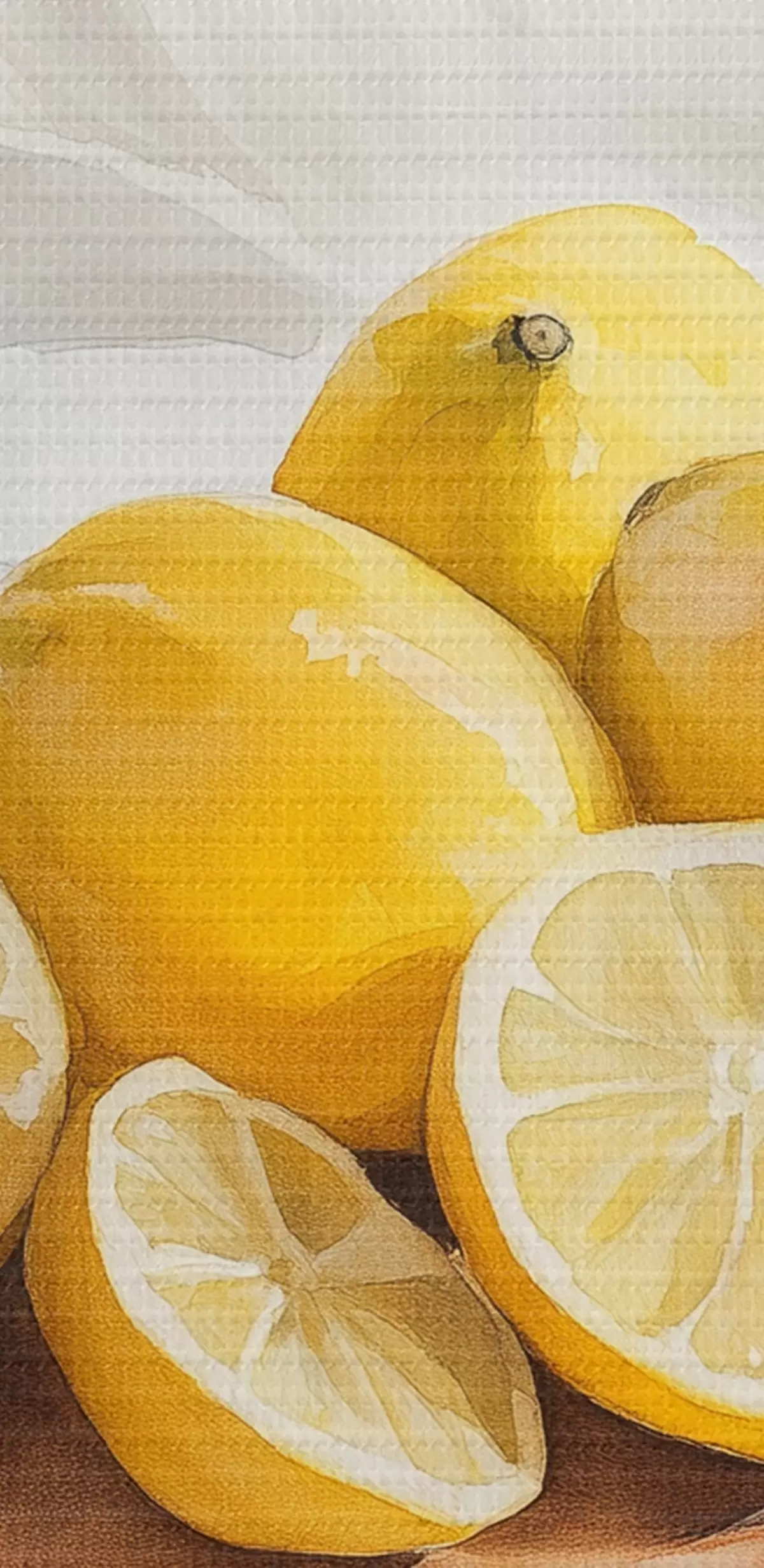 Obraz Naleśniki z masłem orzechowym, cytryny na drewnianej desce, styl akwareli Nr m00416