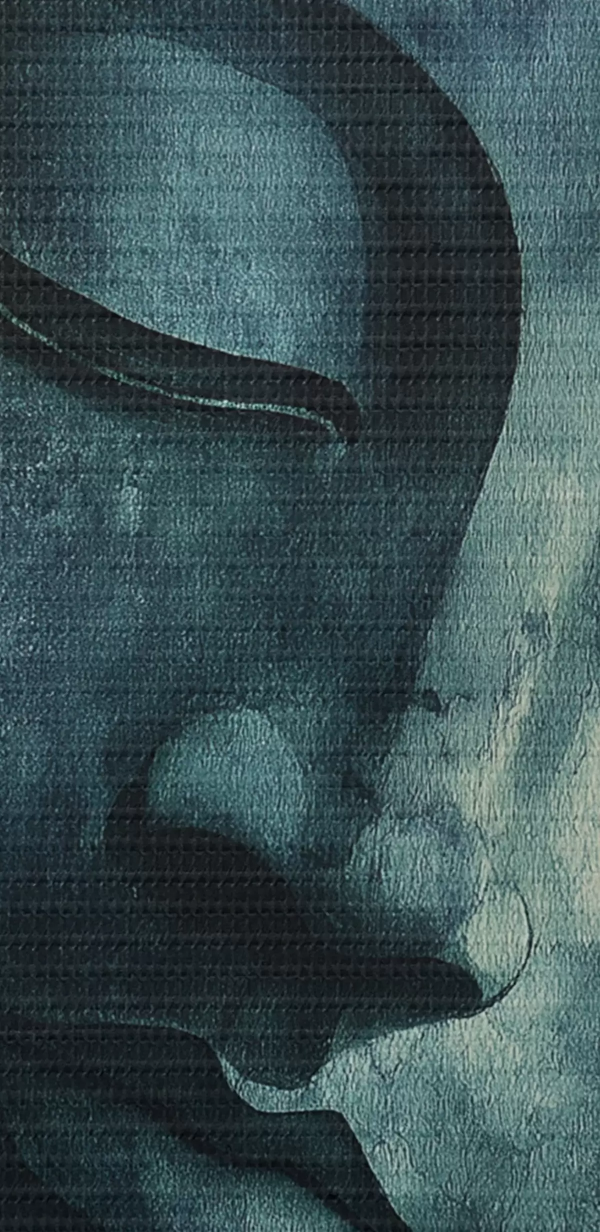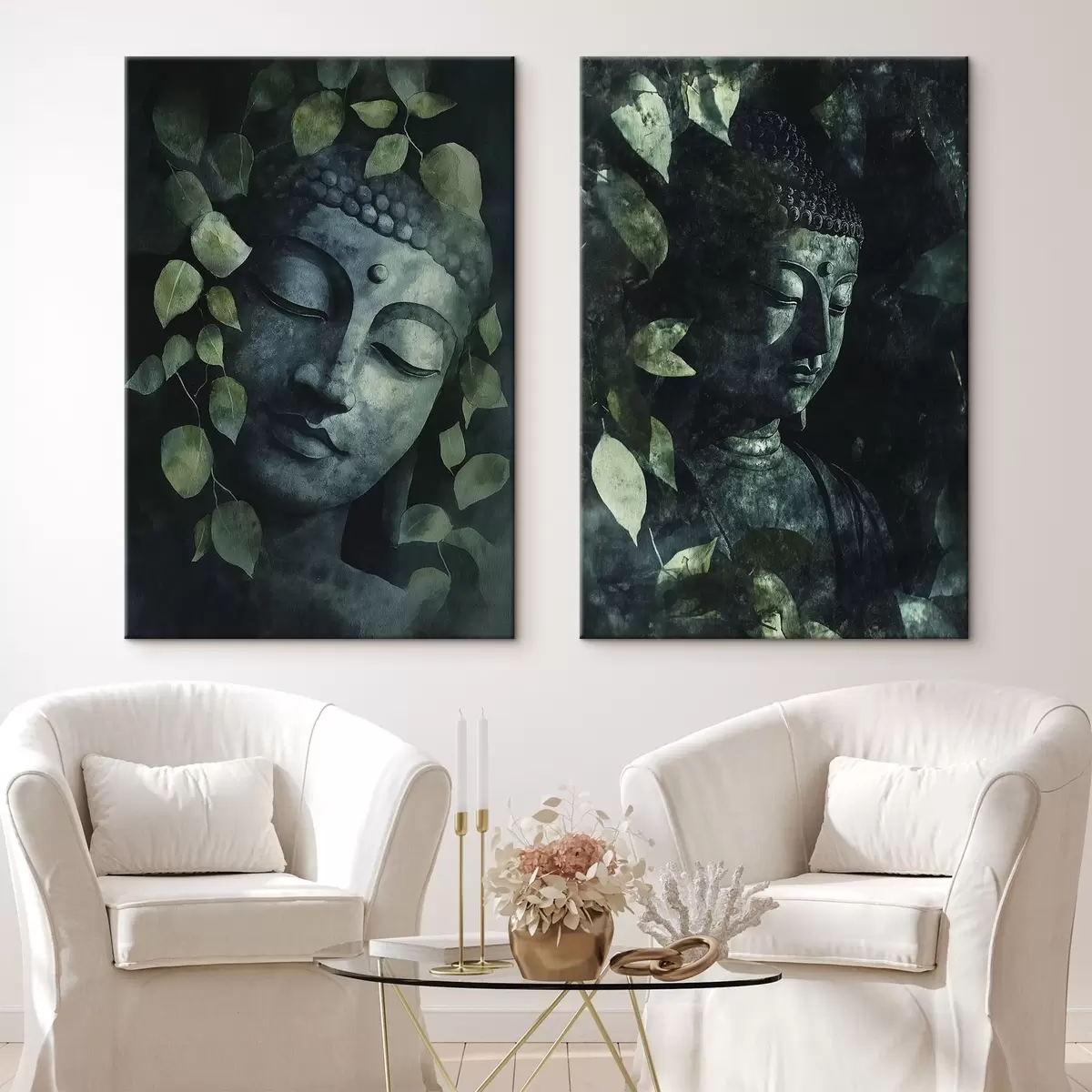 Obraz Zielony Budda w tropikalnych liściach, styl akwareli Nr m00451