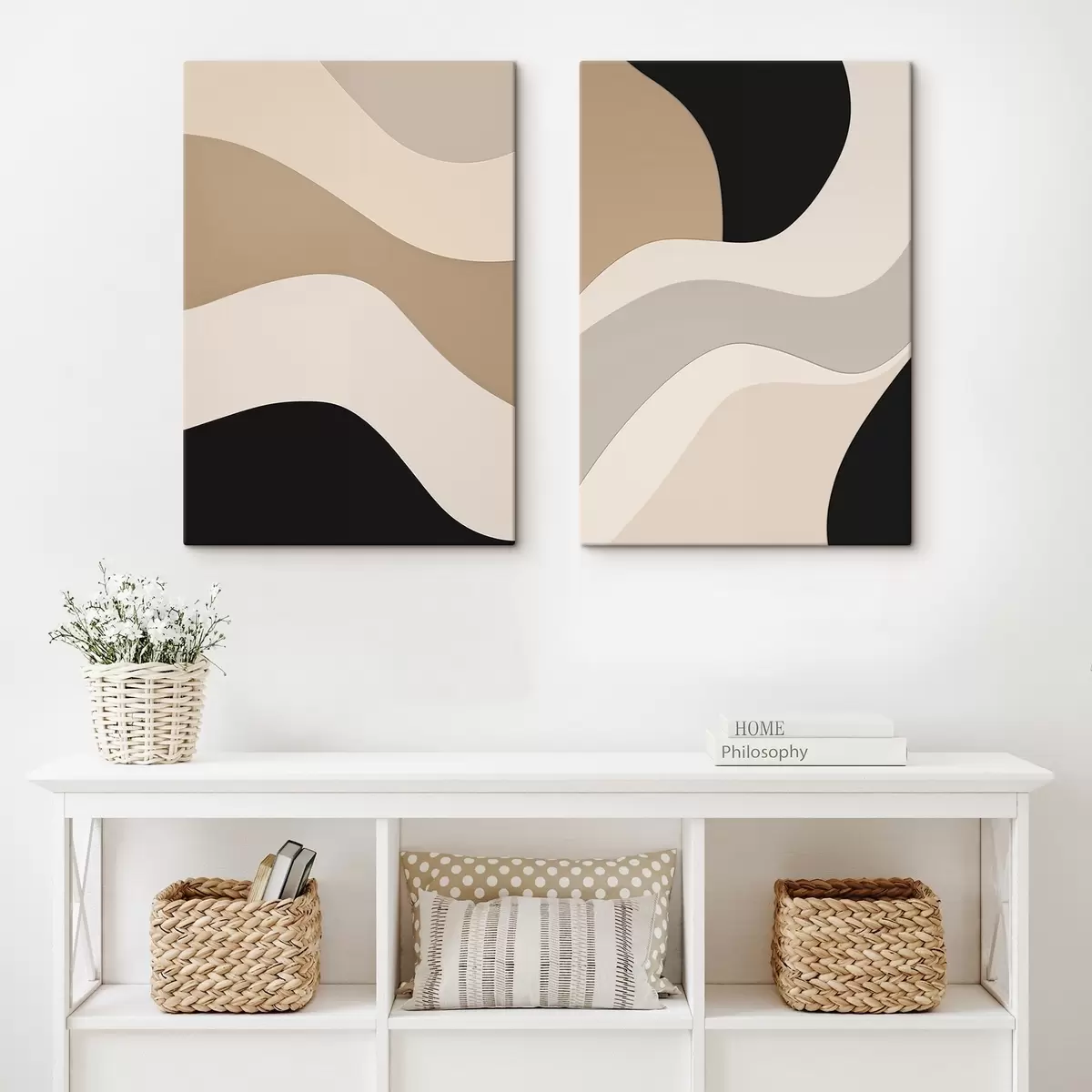 Obraz Abstrakcyjne fale w odcieniach beżu i czerni Nr m00460