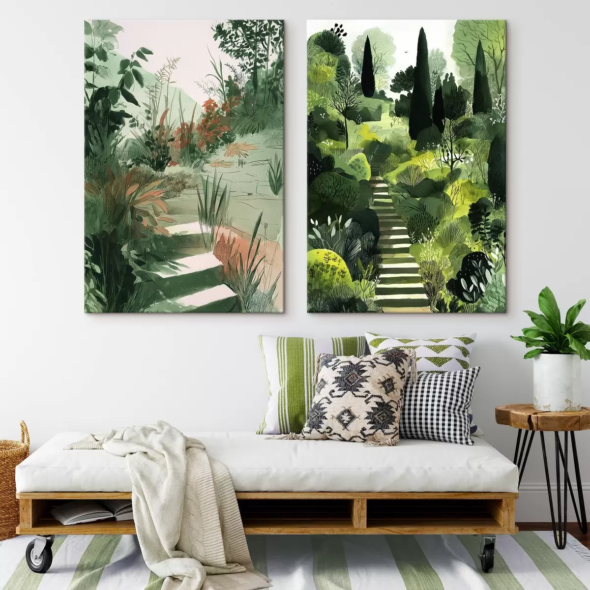 Obraz Zielony orientalny ogród z krzewami i drzewami Nr m00478