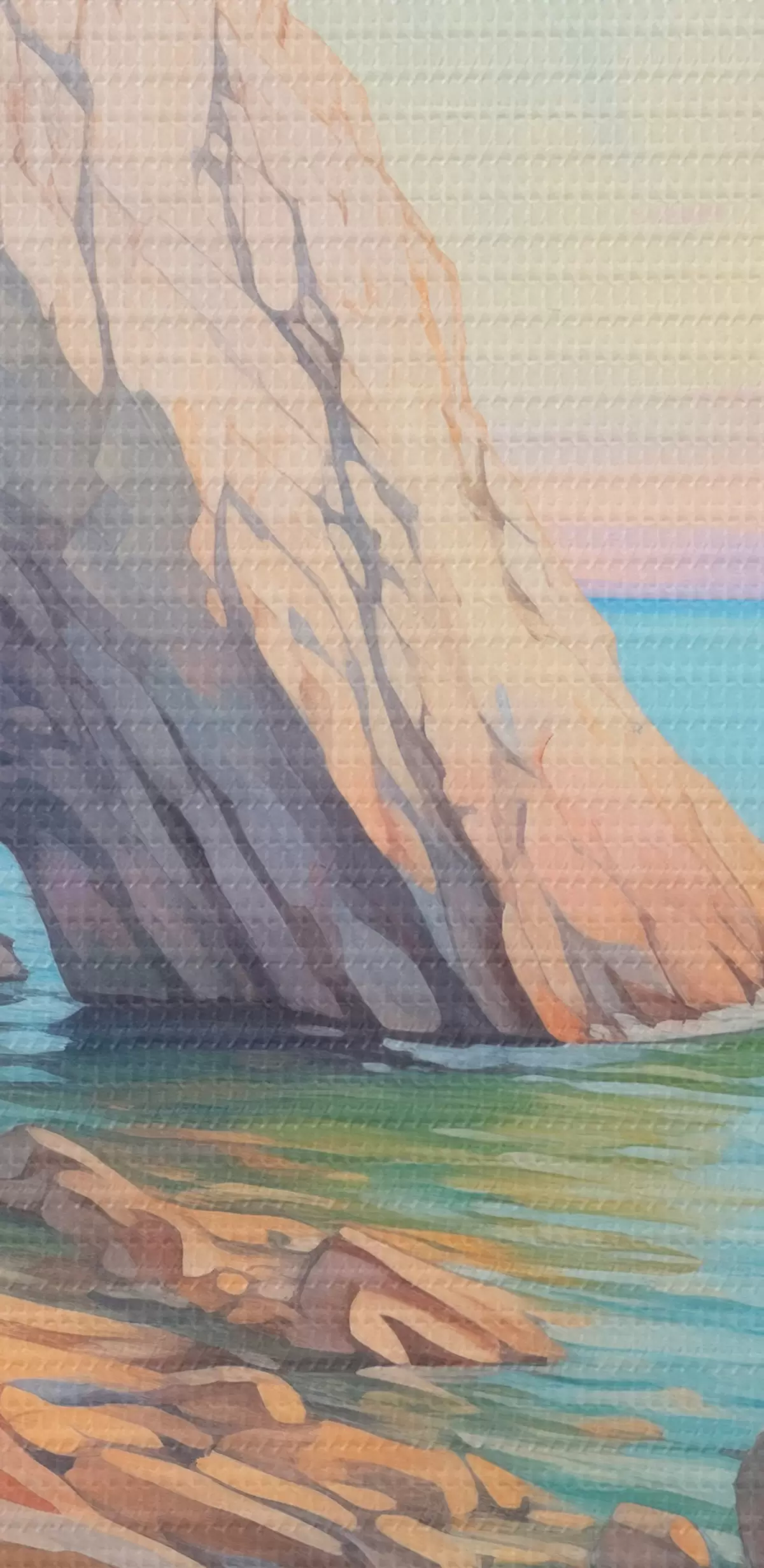 Drobny splot nici na tym płótnie przypomina powierzchnię profesjonalnych płócien artystycznych.