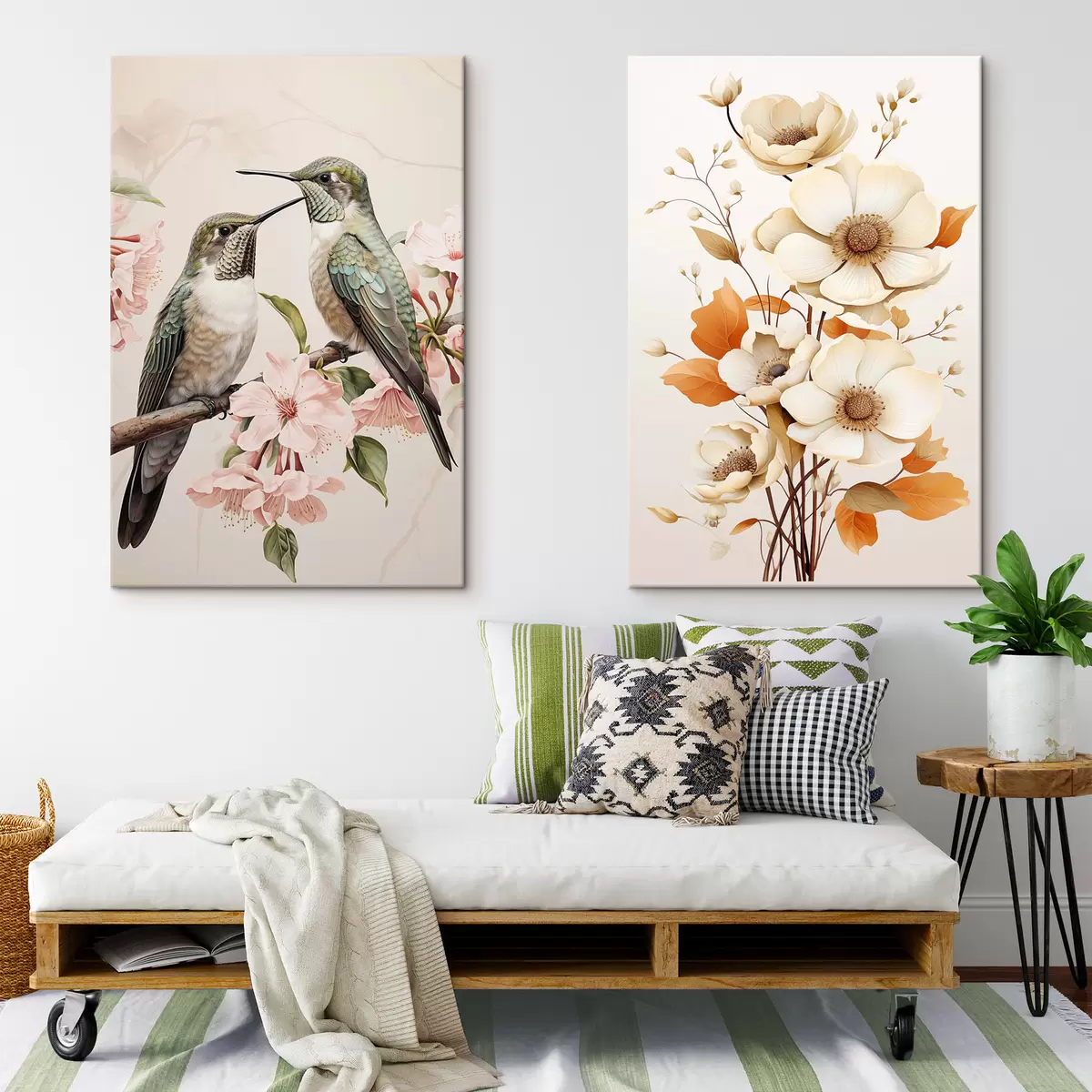 Obraz Kwiaty i ptaki na gałęziach Nr m00560