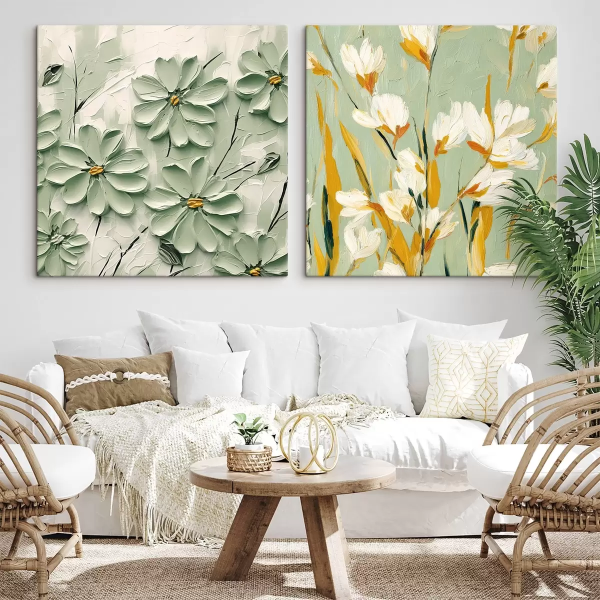 Obraz Kwietna łąka: kompozycja artystyczna z wolumetrycznymi kwiatami na pastelowym tle Nr m00567