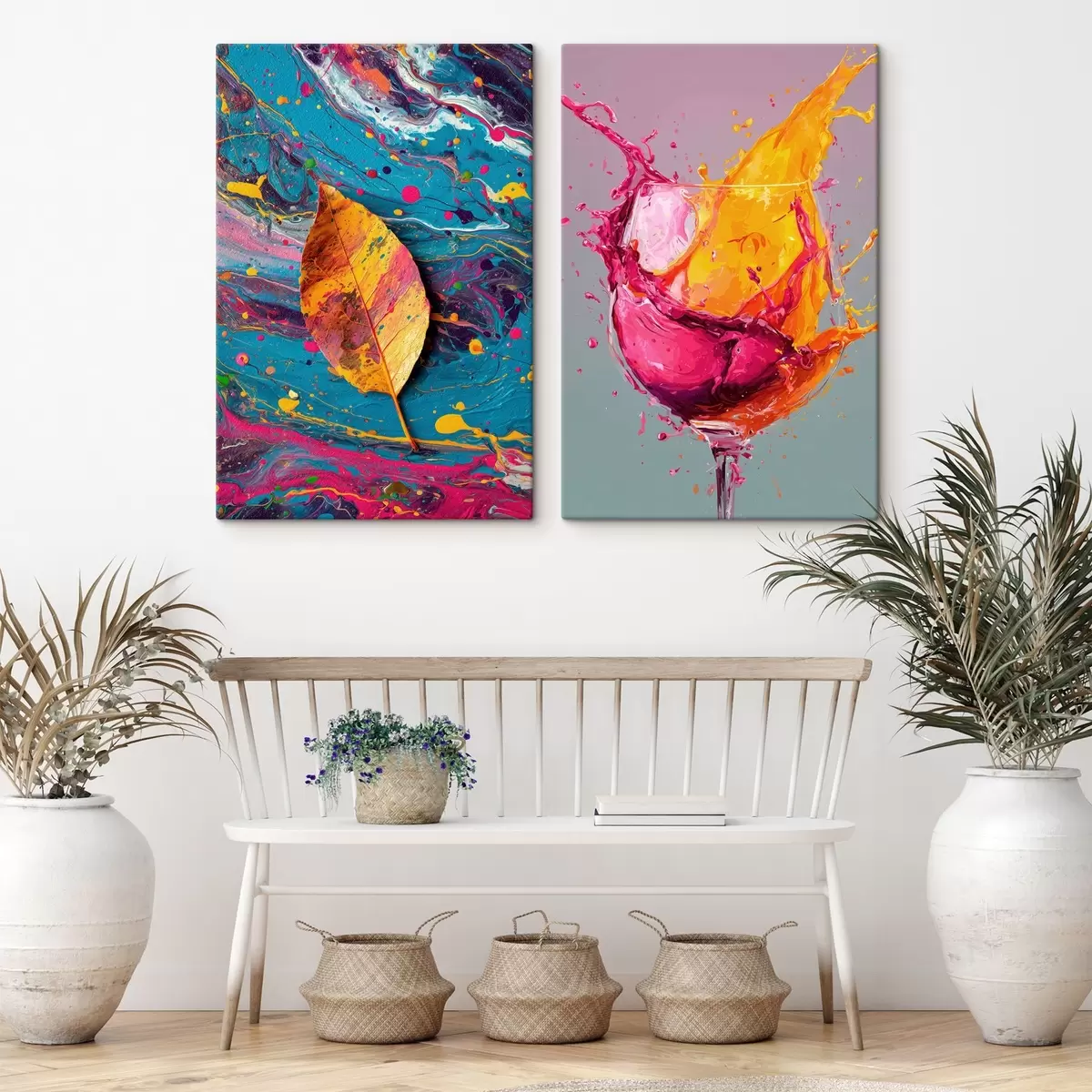 Obraz Ekspresyjna abstrakcja z elementami natury i napojów Nr m00570