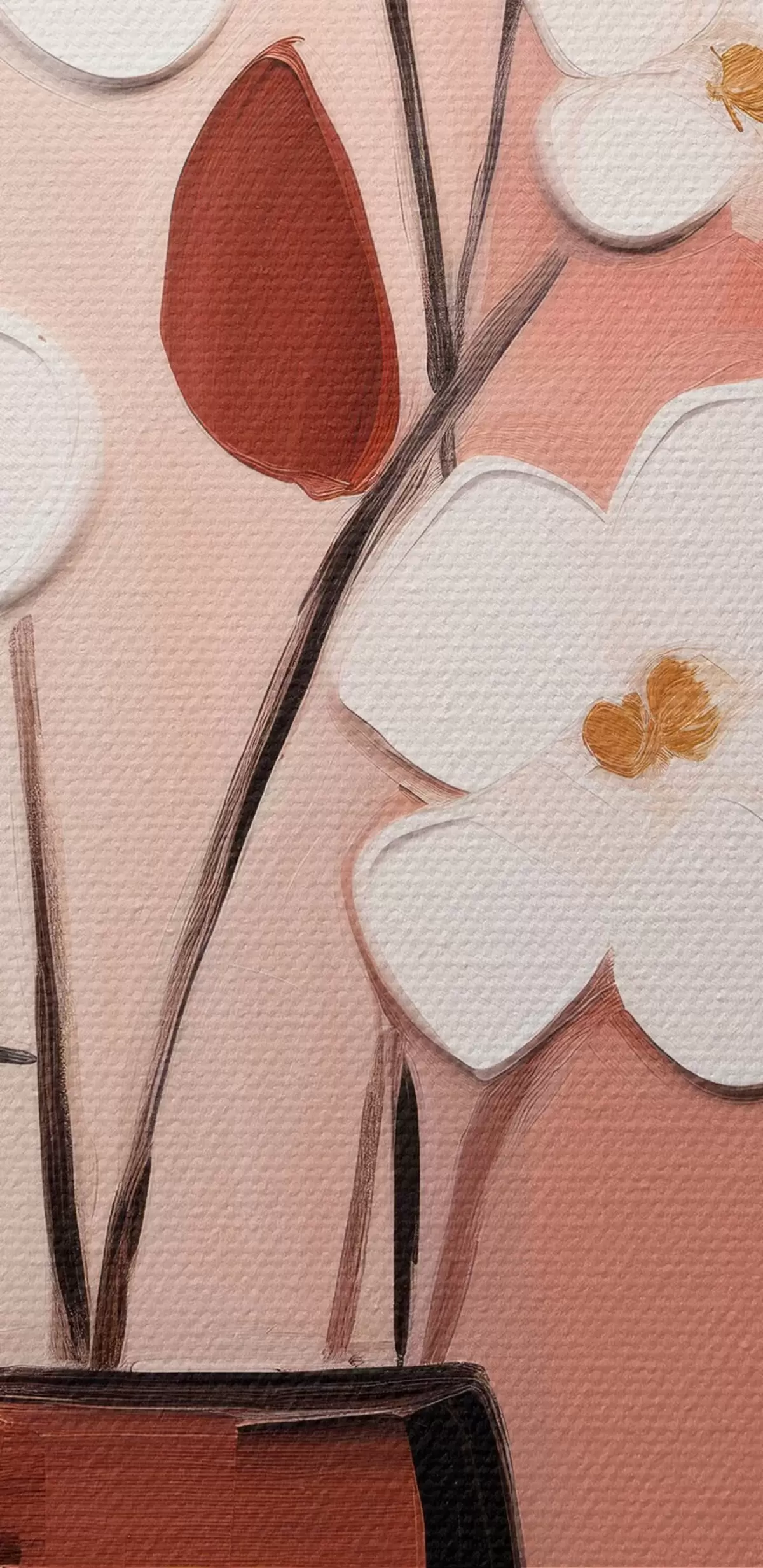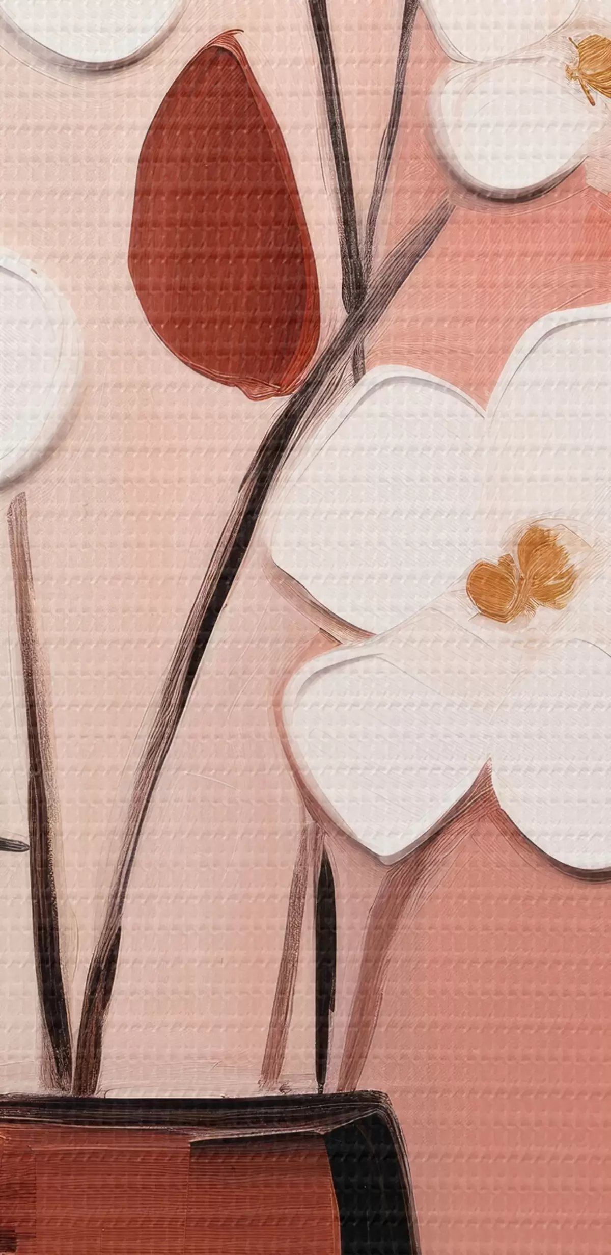 Obraz Kompozycja z kontrastującymi wazonami i teksturowanymi białymi kwiatami Nr m00575