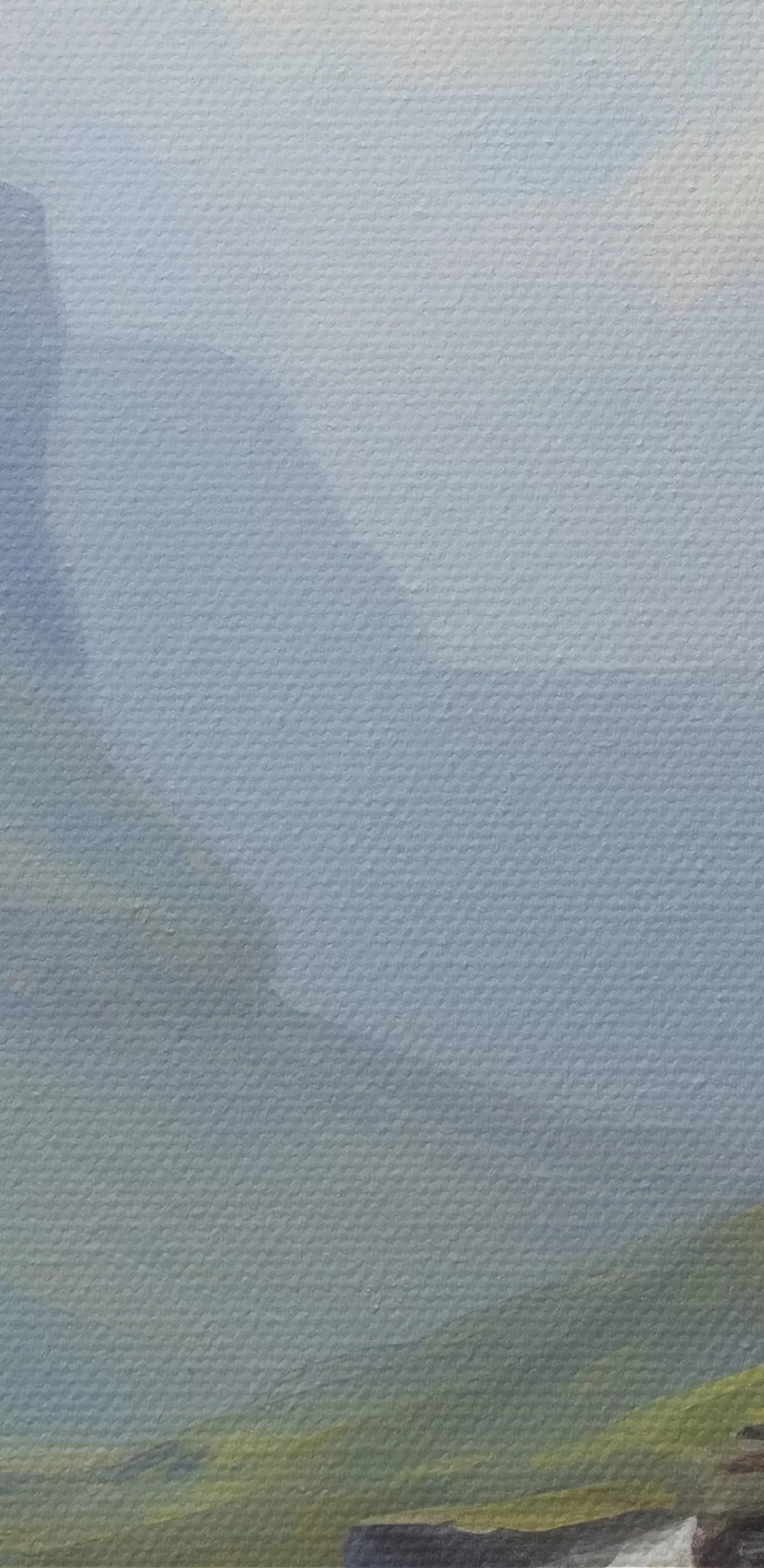 Drobny splot nici na tym płótnie przypomina powierzchnię profesjonalnych płócien artystycznych.