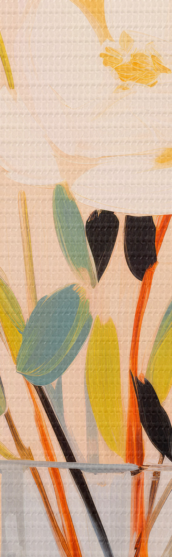Drobny splot nici na tym płótnie przypomina powierzchnię profesjonalnych płócien artystycznych.