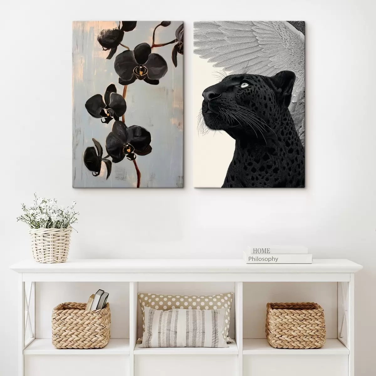 Obraz Ciemne orchidee i skrzydlata bestia: kompozycja artystyczna Nr m00640