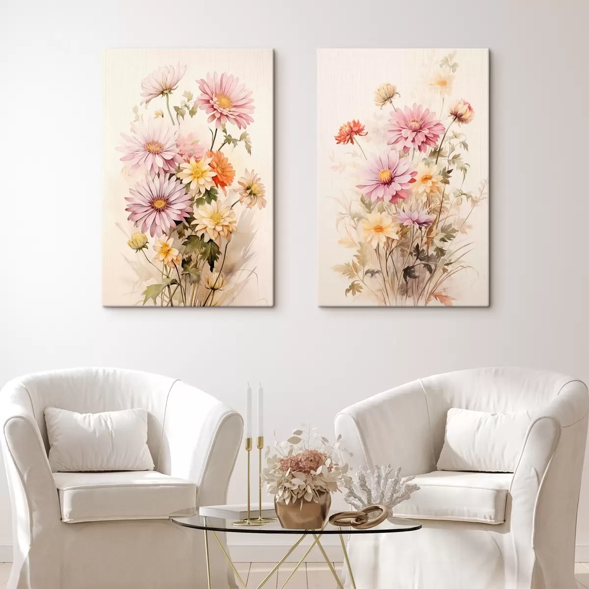 Obraz Bukiet kolorowych kwiatów, miękki styl akwareli, na jasnym tle, ilustracja botaniczna Nr m00649
