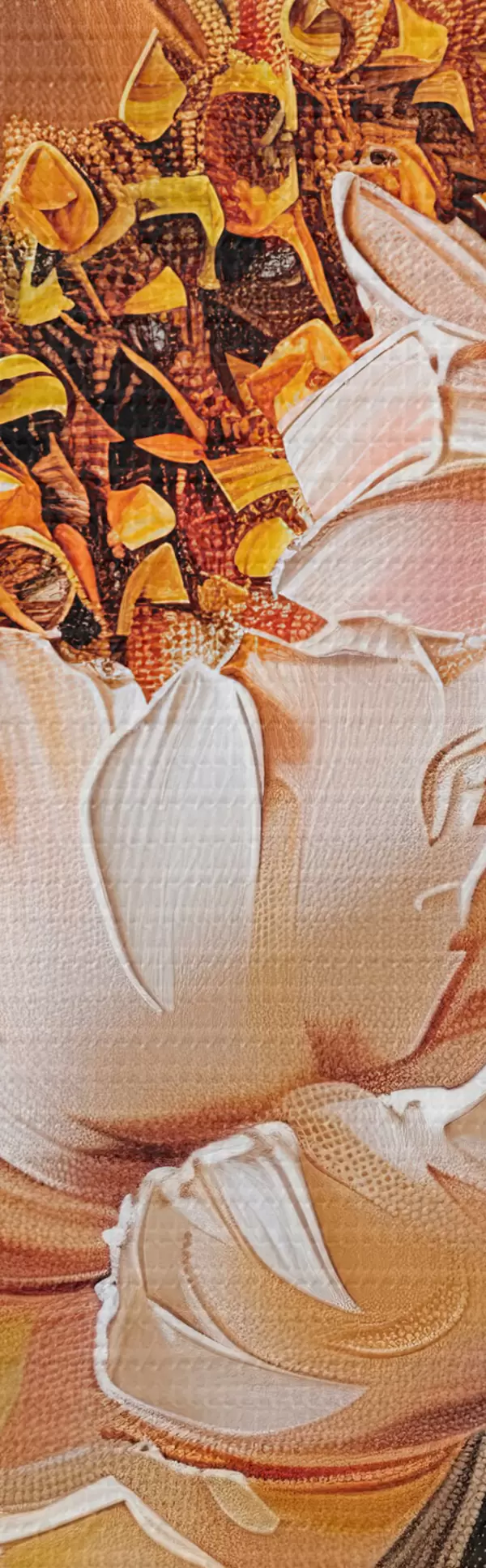 Do zamówienia dostępne są trzy rodzaje materiału: Economic Canvas - gęsty i trwały materiał do druku cyfrowego, identyczny z płótnem malarskim, wodoodporna powierzchnia, realistyczne odwzorowanie szczegółów, materiał średnioziarnisty. Premium Canvas - tekstura przypominająca płótno malarskie (przeplatane drobne nitki). Miękka, szczegółowa reprodukcja obrazu na matowej powierzchni. Eco-Premium - wysokiej jakości tkanina w 100% bawełniana. Dzięki naturalnym włóknom bawełnianym materiał jest trwały i odporny na zużycie. Doskonałe odwzorowanie kolorów i szczegółów.