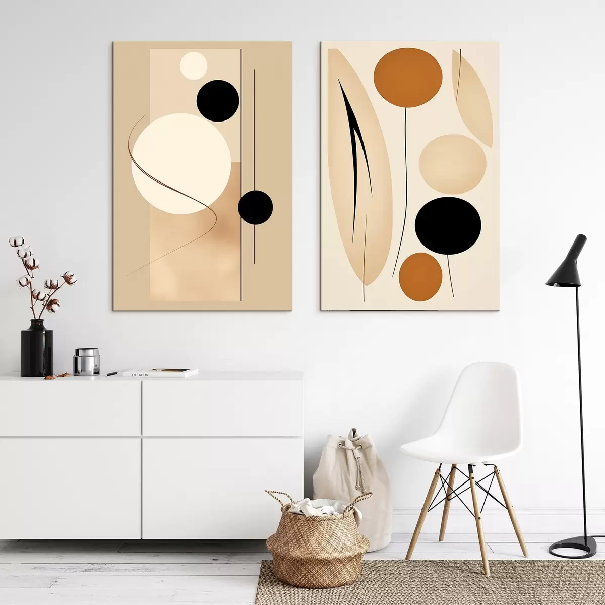 Obraz Minimalistyczne geometryczne koła w odcieniach beżu i czerni Nr m00685