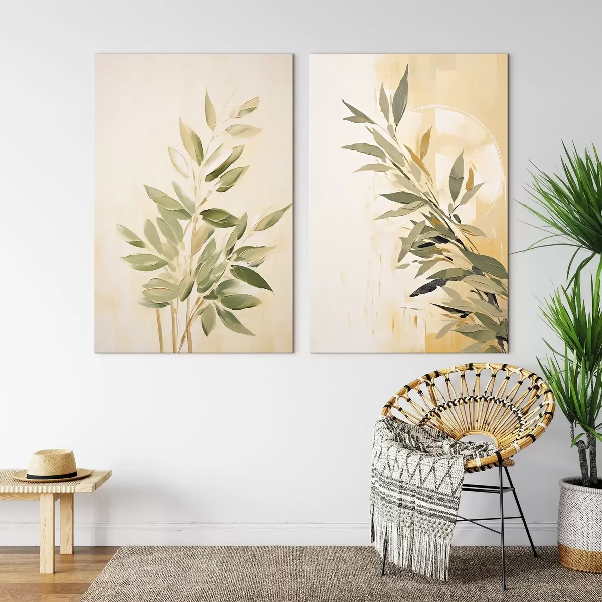 Obraz Botaniczna gałąź z zielonymi liśćmi na ciepłym tle Nr m00686