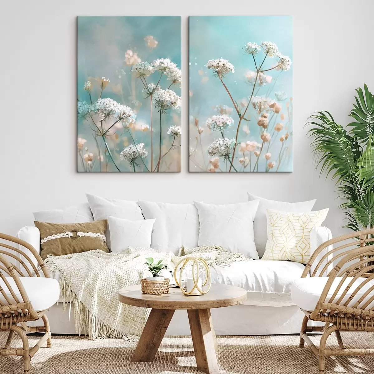 Obraz Kwiaty Queen Anne's Lace w stylu akwareli na niebieskim tle Nr m00705
