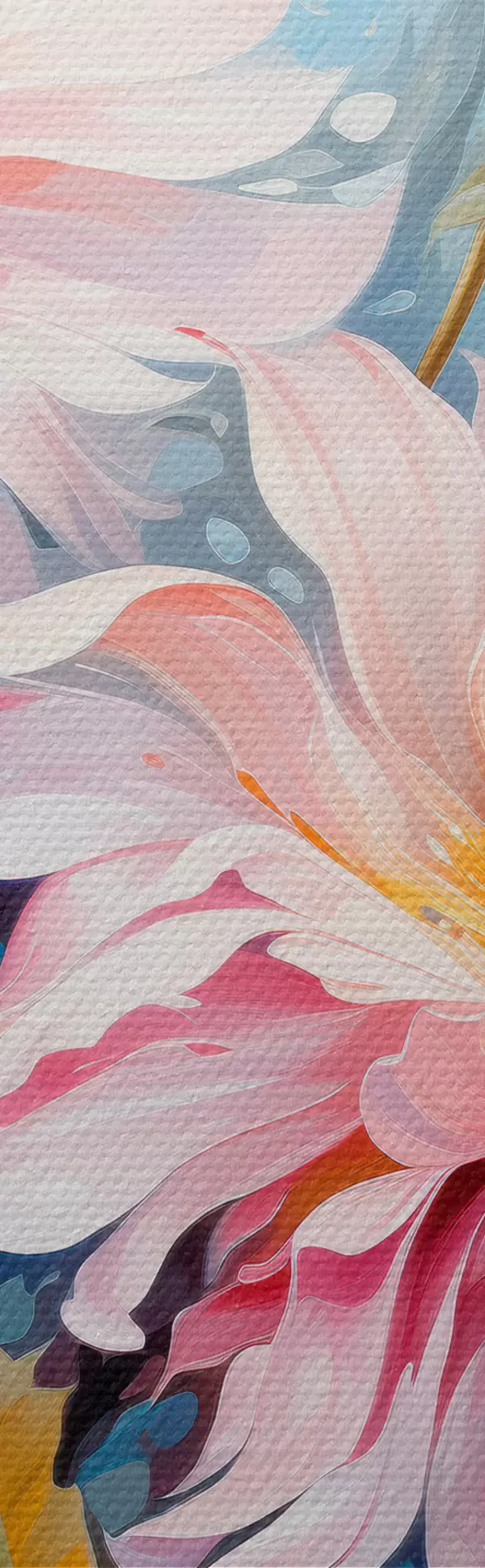 Do zamówienia dostępne są trzy rodzaje materiału: Economic Canvas - gęsty i trwały materiał do druku cyfrowego, identyczny z płótnem malarskim, wodoodporna powierzchnia, realistyczne odwzorowanie szczegółów, materiał średnioziarnisty. Premium Canvas - tekstura przypominająca płótno malarskie (przeplatane drobne nitki). Miękka, szczegółowa reprodukcja obrazu na matowej powierzchni. Eco-Premium - wysokiej jakości tkanina w 100% bawełniana. Dzięki naturalnym włóknom bawełnianym materiał jest trwały i odporny na zużycie. Doskonałe odwzorowanie kolorów i szczegółów.