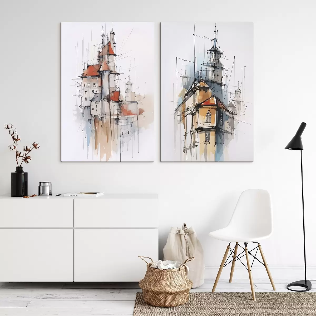 Obraz Dom imitacja szkic i akwarela Nr m00725
