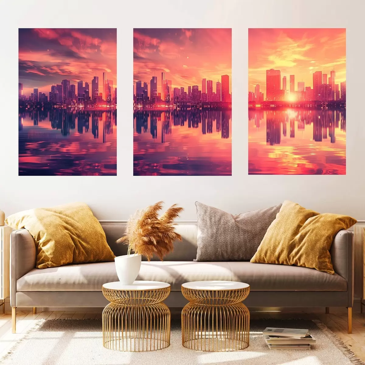 Obraz Romantyczny zachód słońca na tle nowoczesnego miasta Nr m00784