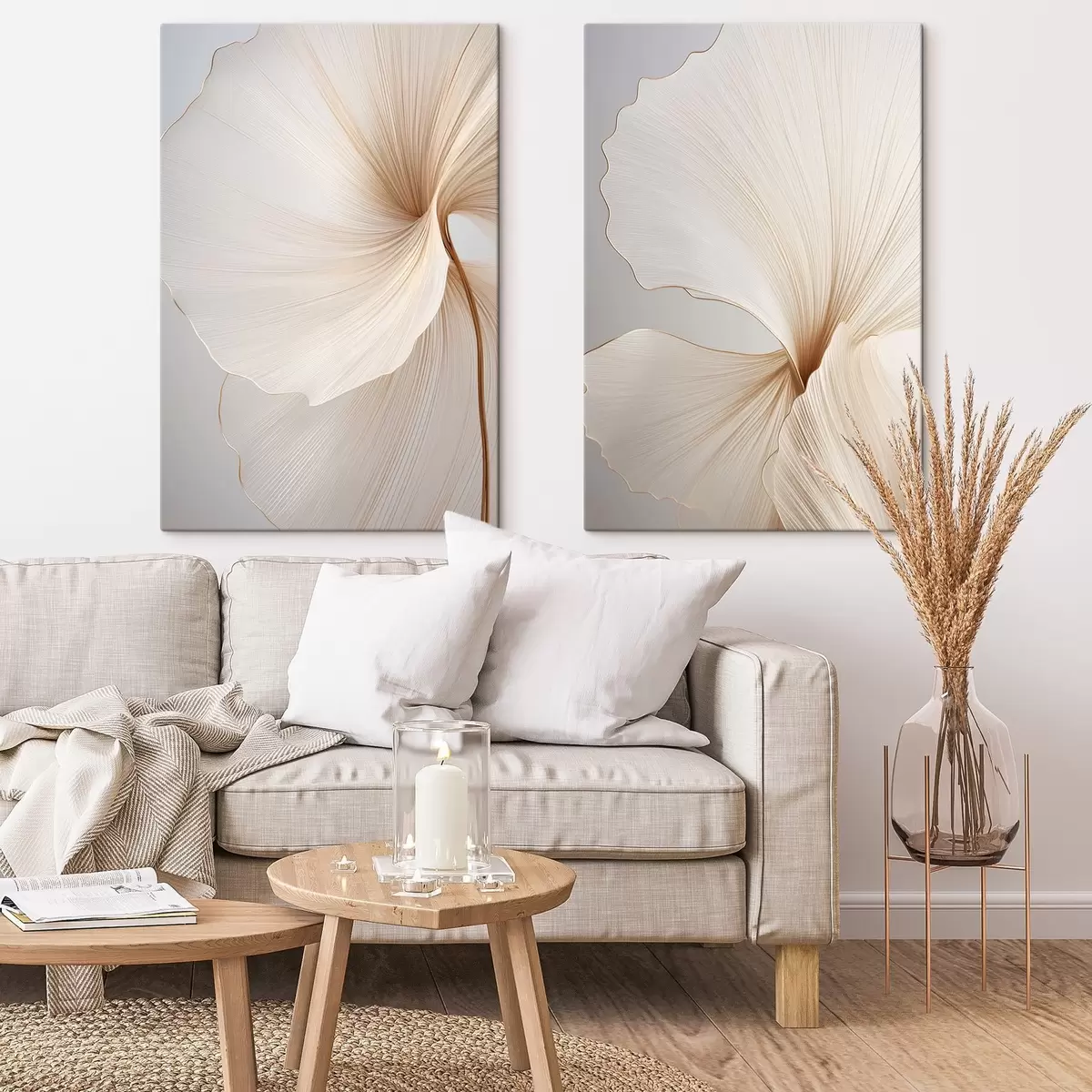 Obraz Abstrakcyjne kwiaty o cienkich, delikatnych płatkach w odcieniach bieli i beżu Nr m00817