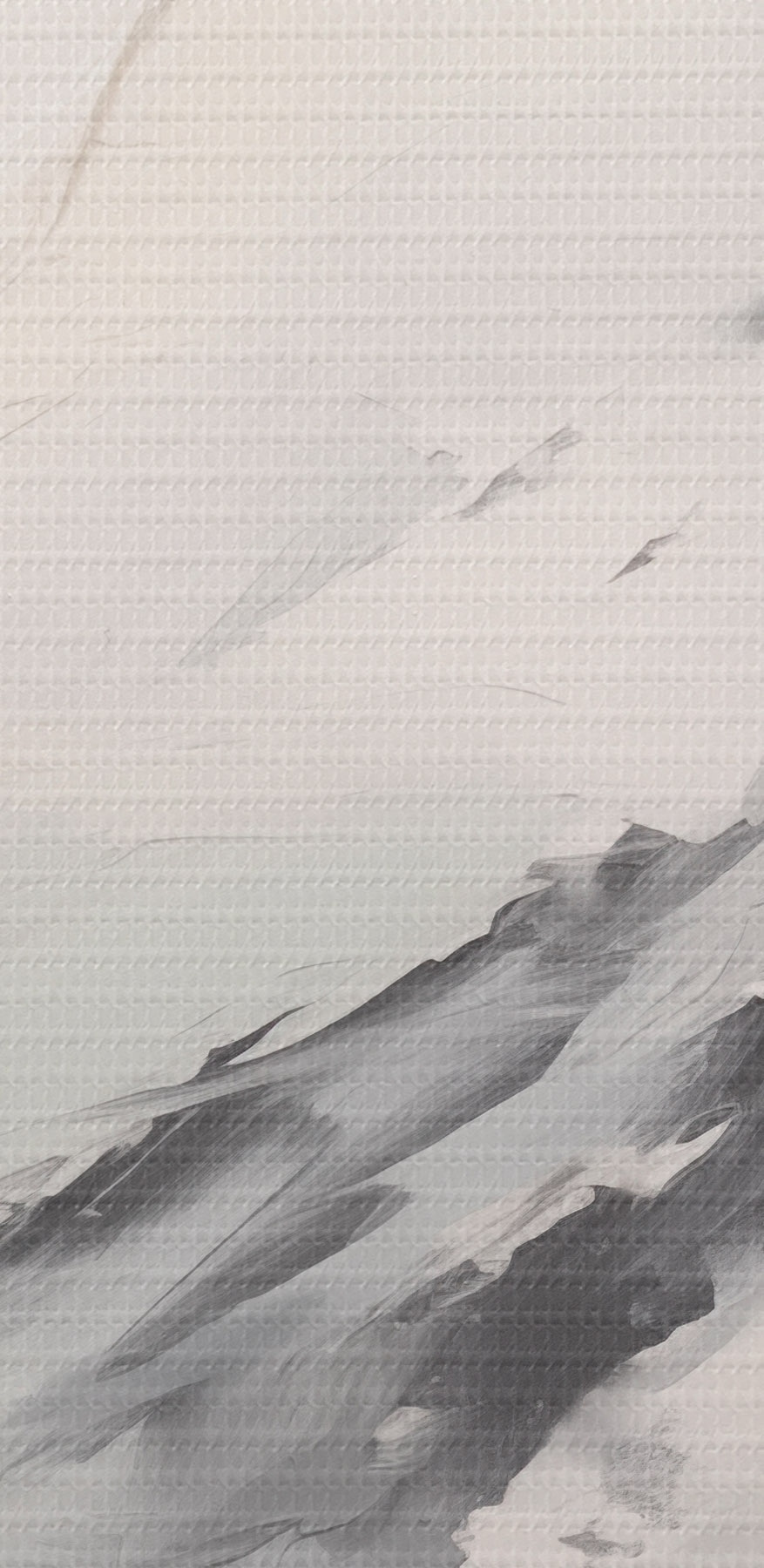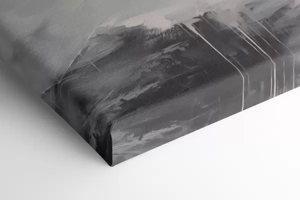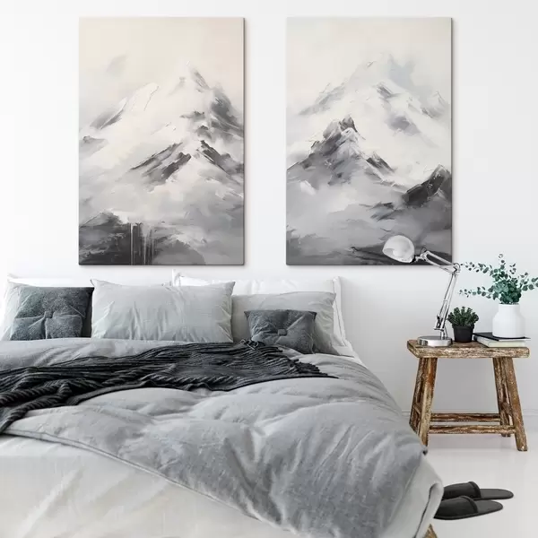 Obraz Ośnieżone szczyty górskie z szarymi cieniami, szare niebo, pociągnięcia pędzla, teksturowane, minimalistyczne Nr m00822