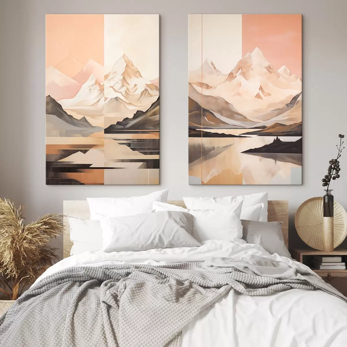 Obraz Abstrakcyjny krajobraz z górami i jeziorem, pastelowe kolory, minimalistyczny styl Nr m00830