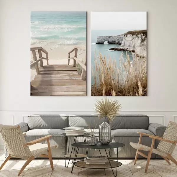 Obraz Wybrzeże klifowe i wyschnięta trawa nad turkusowym morzem Nr m00875