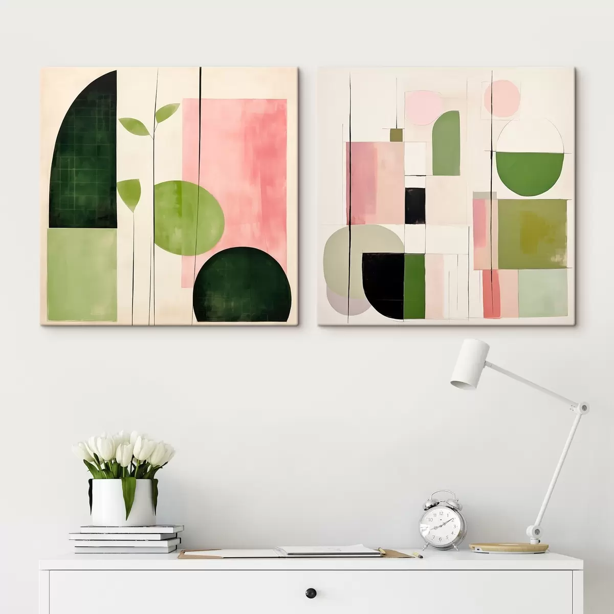 Obraz Minimalistyczny dyptyk ze stylizowaną florą i geometrią Nr m00894