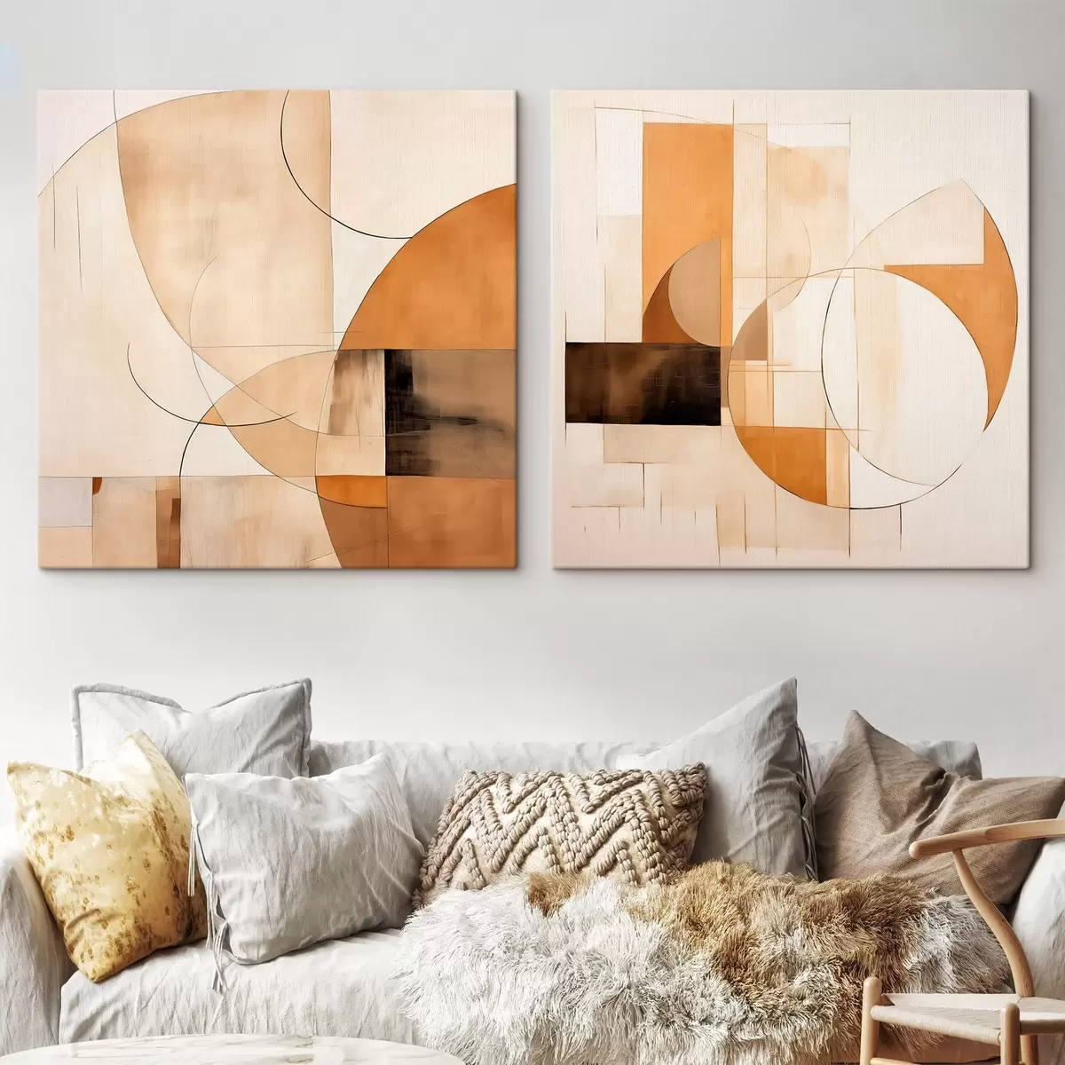 Obraz Nowoczesna abstrakcja z okręgami i liniami w kolorach kawy z mlekiem Nr m00898