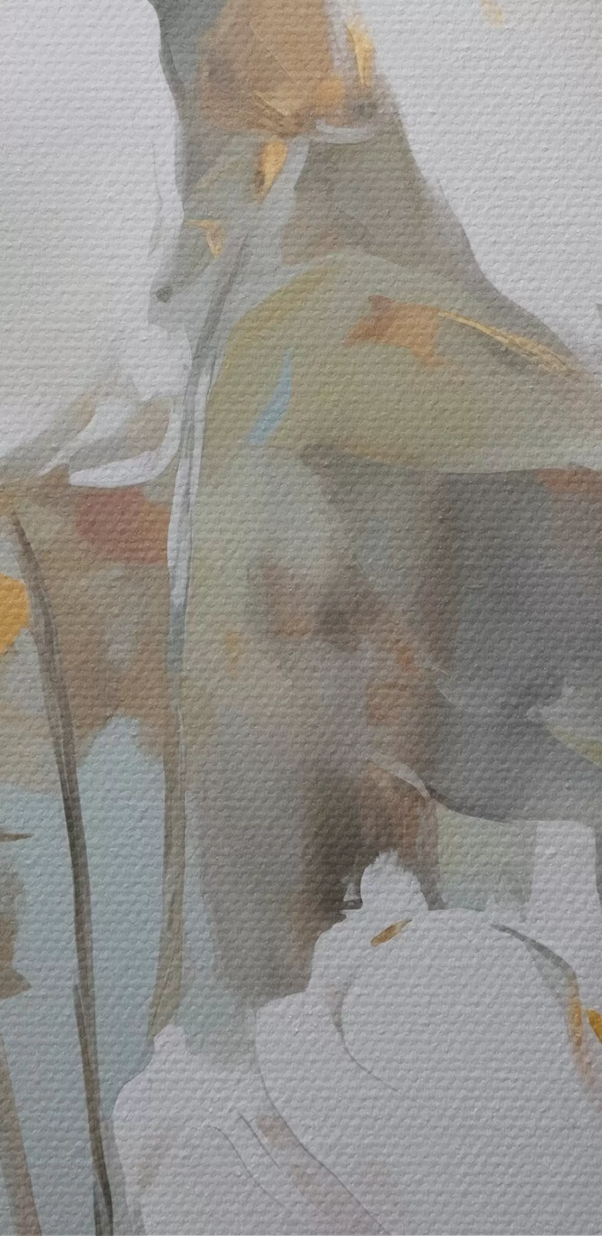 Drobny splot nici na tym płótnie przypomina powierzchnię profesjonalnych płócien artystycznych.