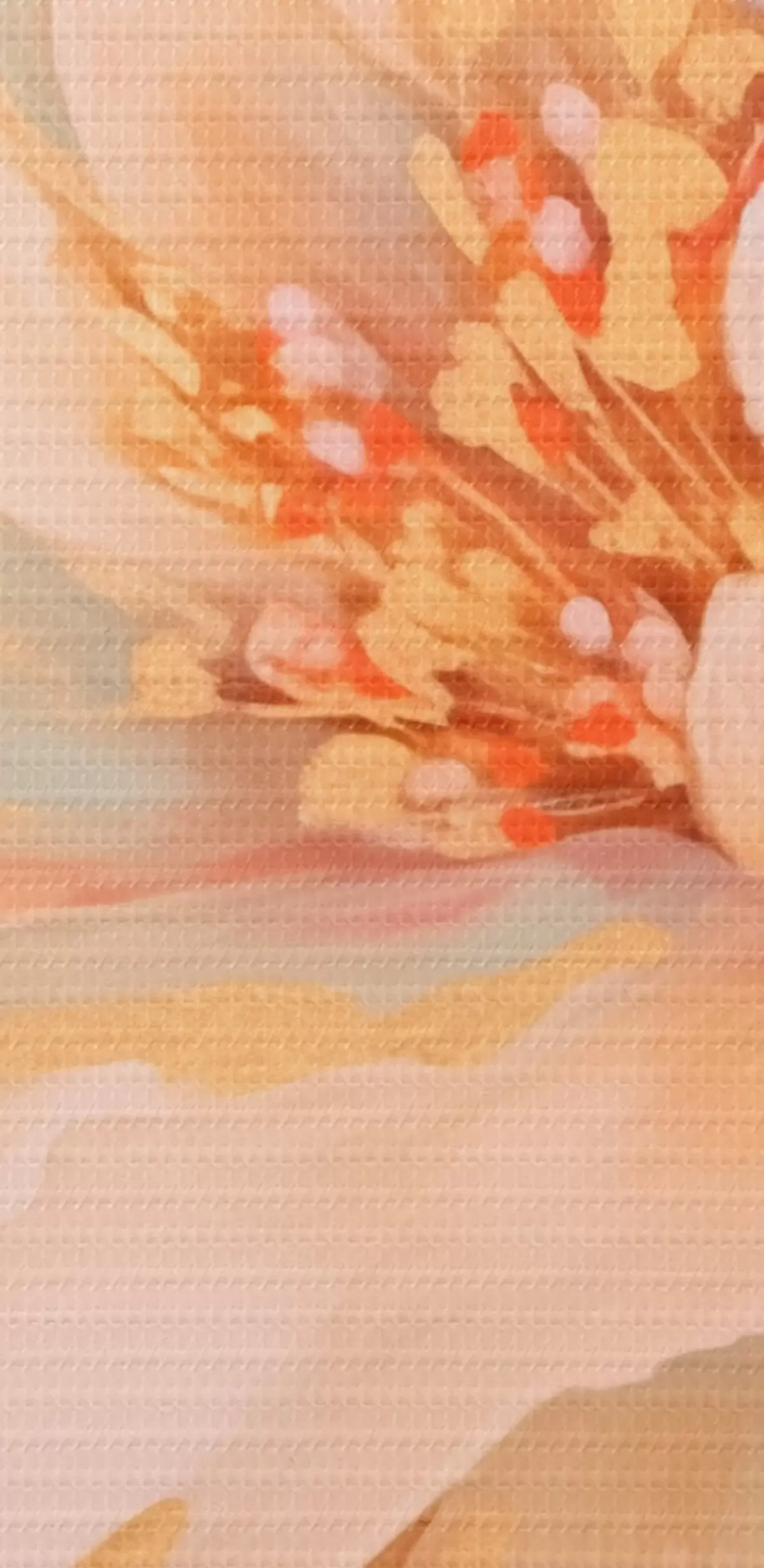 Drobny splot nici na tym płótnie przypomina powierzchnię profesjonalnych płócien artystycznych.