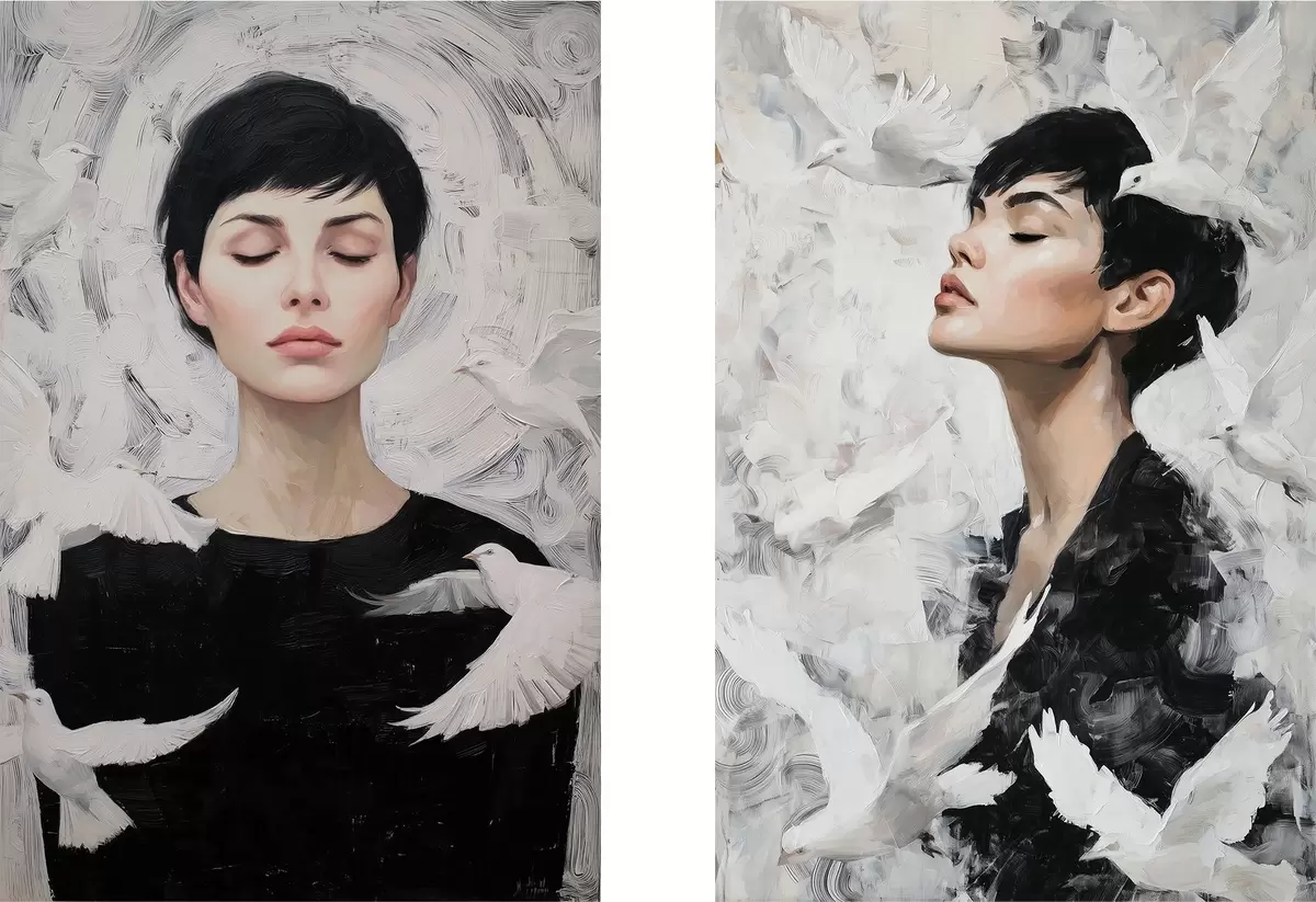 Obraz można delikatnie przetrzeć suchą, miękką szmatką lub gąbką; nie zaleca się używania mokrych produktów. Użycie wilgotnej gąbki jest dozwolone tylko wtedy, gdy obraz został polakierowany.