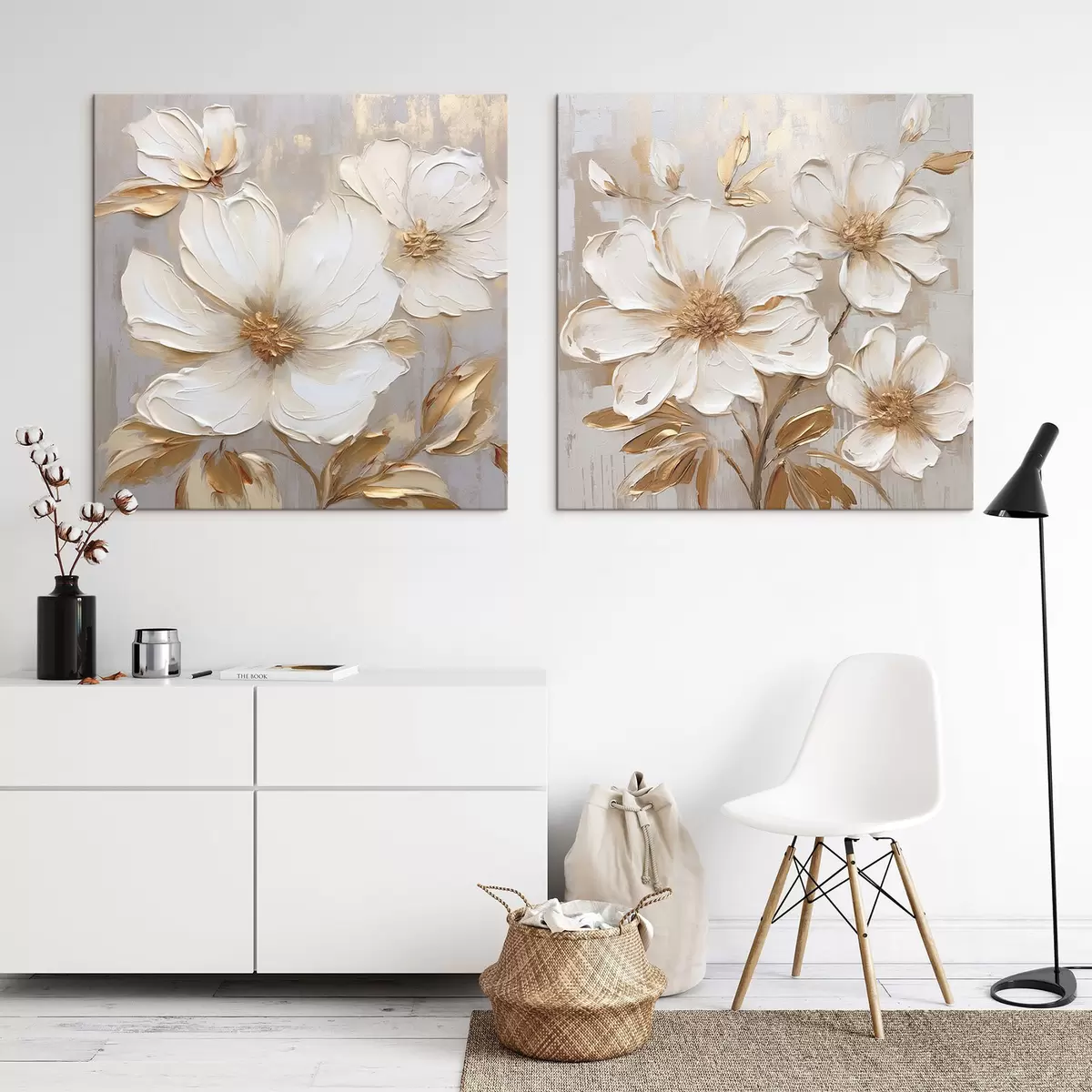 Obraz Dyptyk z dużymi kwiatami w jasnych, ciepłych kolorach Nr m00927