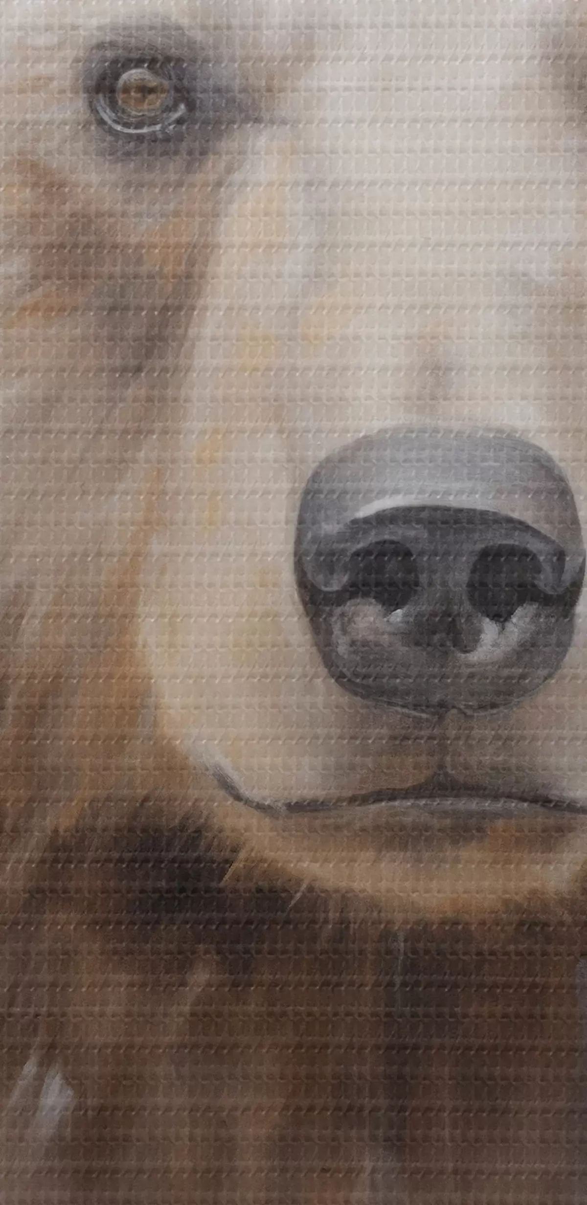 Drobny splot nici na tym płótnie przypomina powierzchnię profesjonalnych płócien artystycznych.