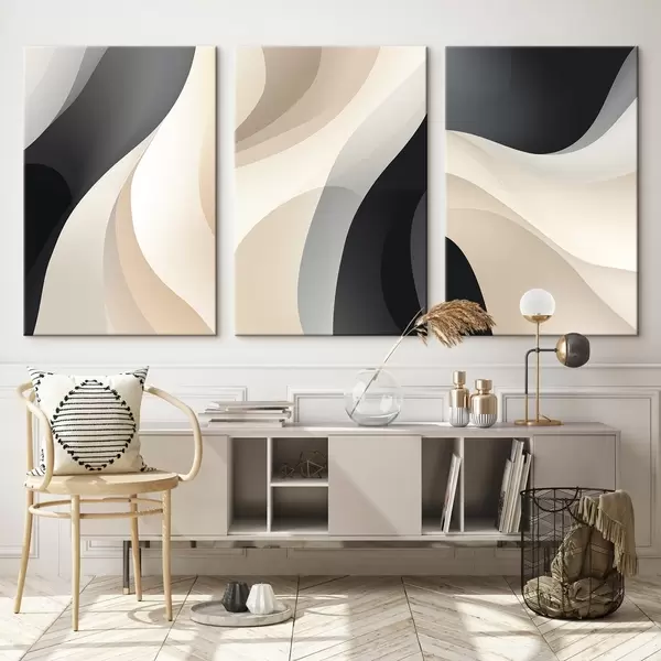 Obraz Minimalistyczne, płynne krzywizny w kolorze kremowym, szarym i czarnym Nr m00962